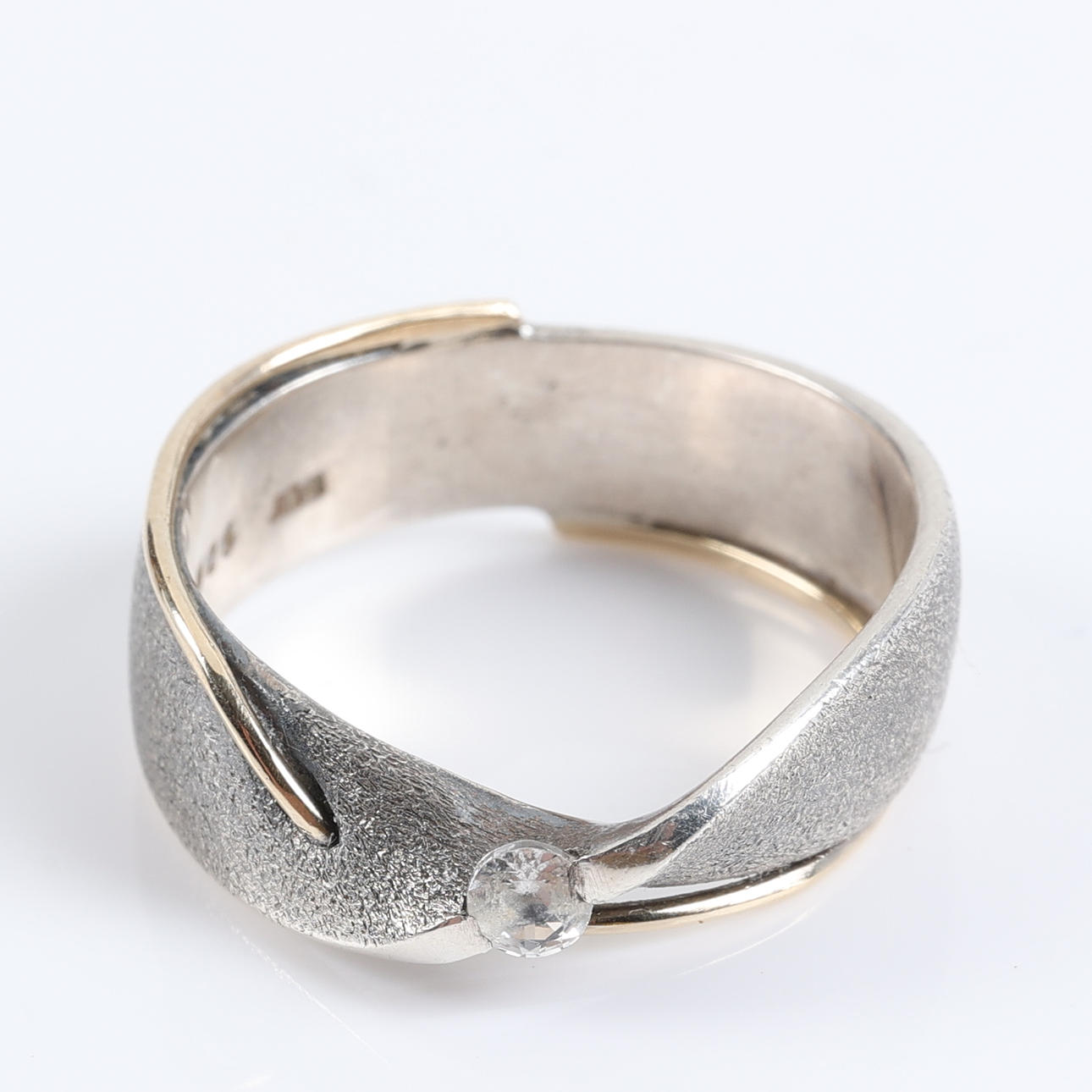 Ring in sterling silver with gilt decoration and a brilliant cut cubic zirconia