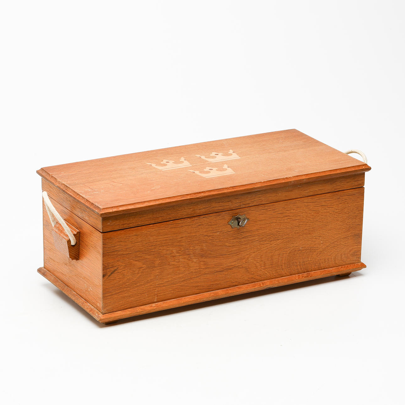 Accompanying wooden box with intarsia, three crowns included.