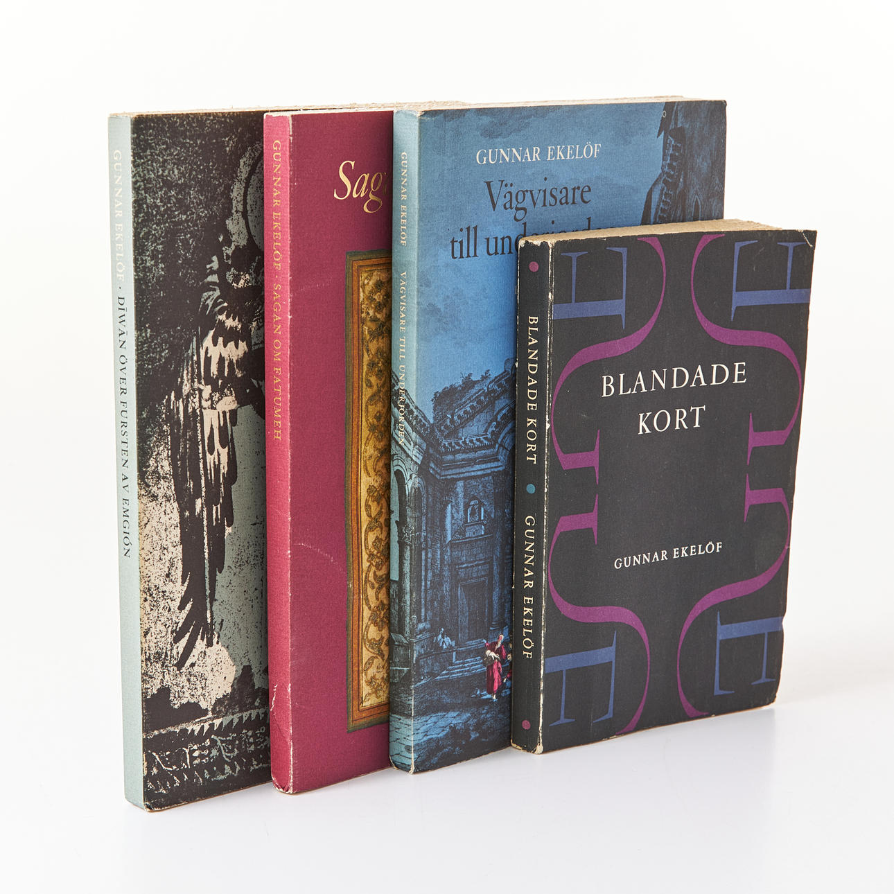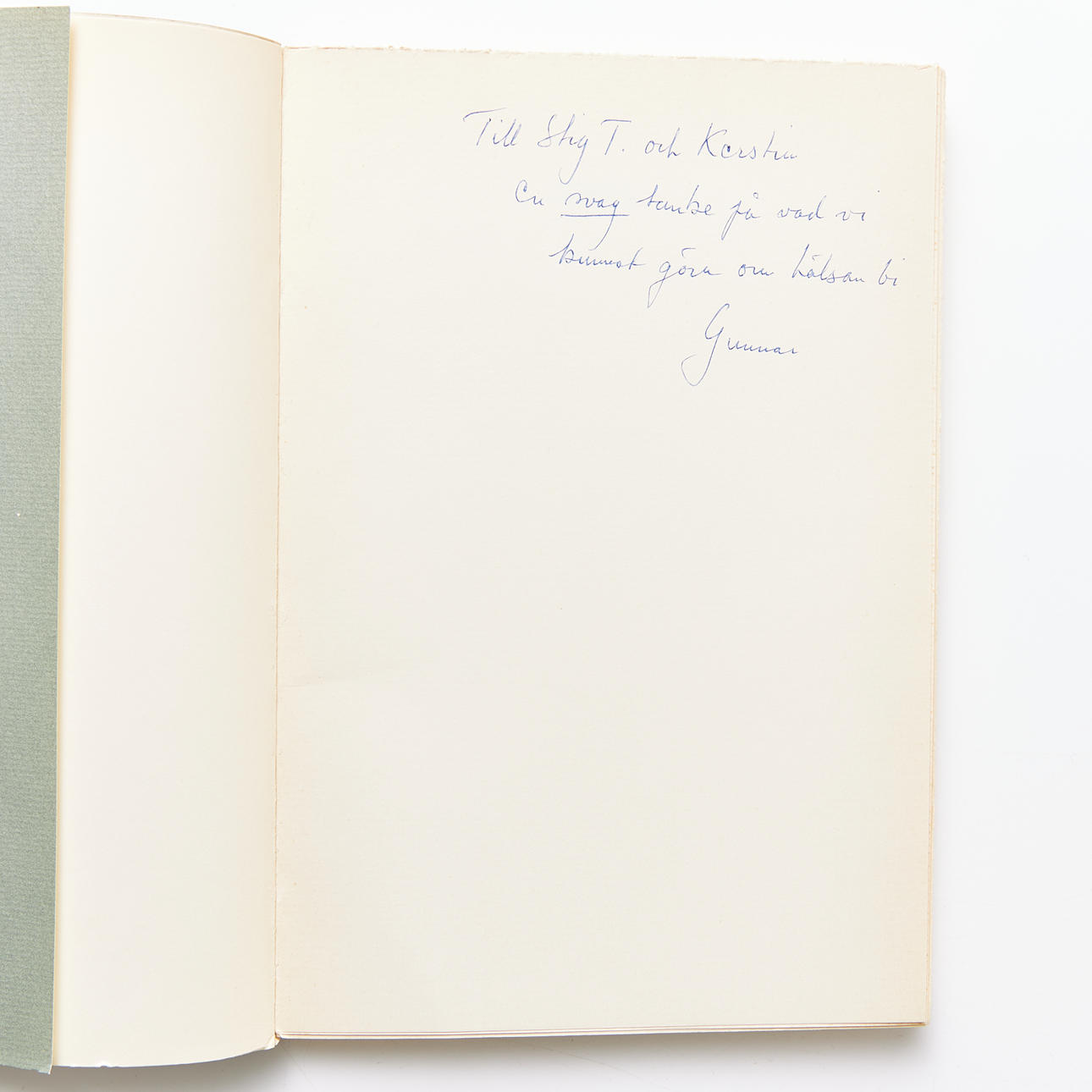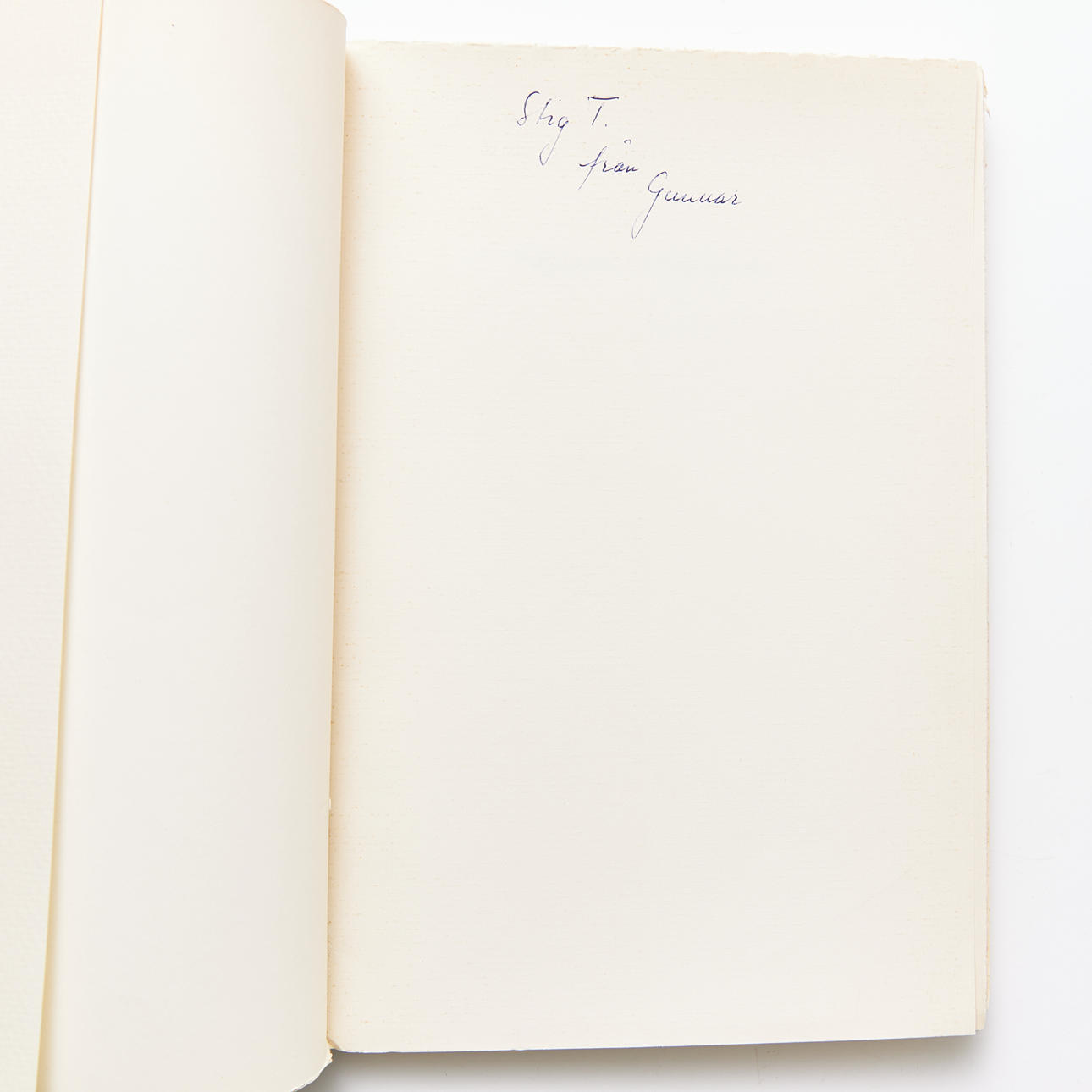 Uncut in original cover. With dedication on the cover: “To Stig T. and Kerstin a faint thought on what we could do about health bee. Gunnar”. First edition. With several dedications to Stig T, all first editions. 4 volumes.