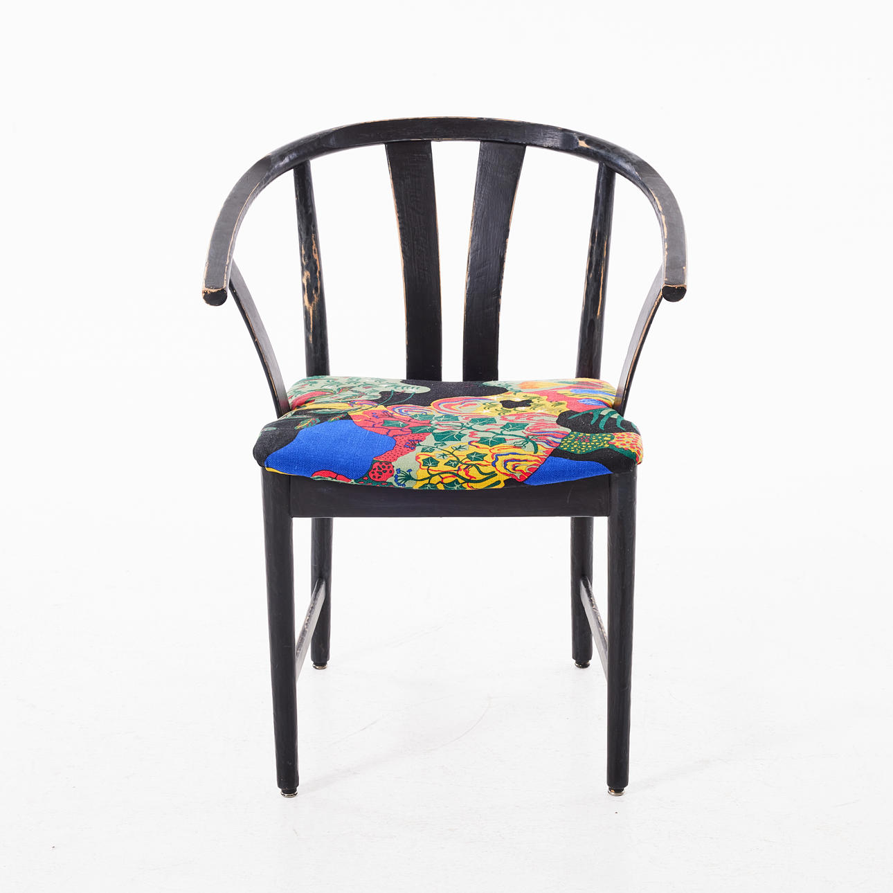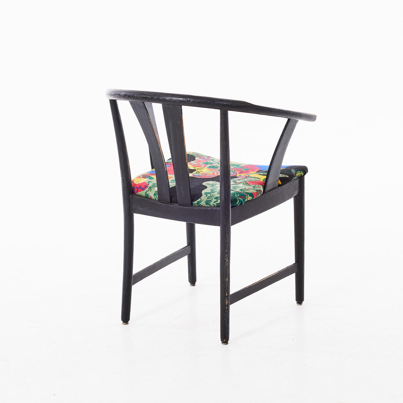 Black painted frame, upholstered in Swedish Tenn fabric Josef Frank, seat height 45 cm.