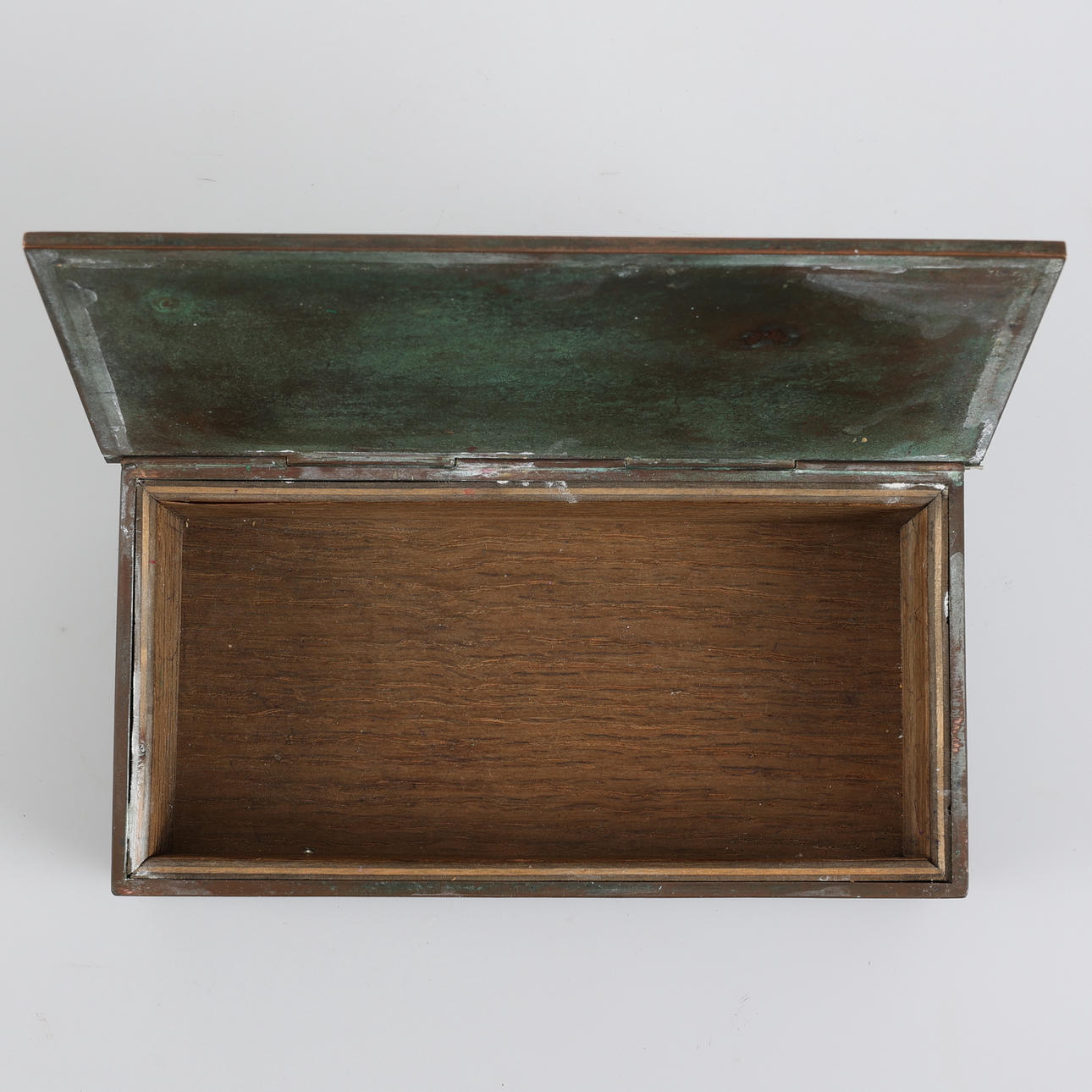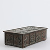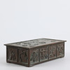 Bronze and wood casket, marked at the bottom