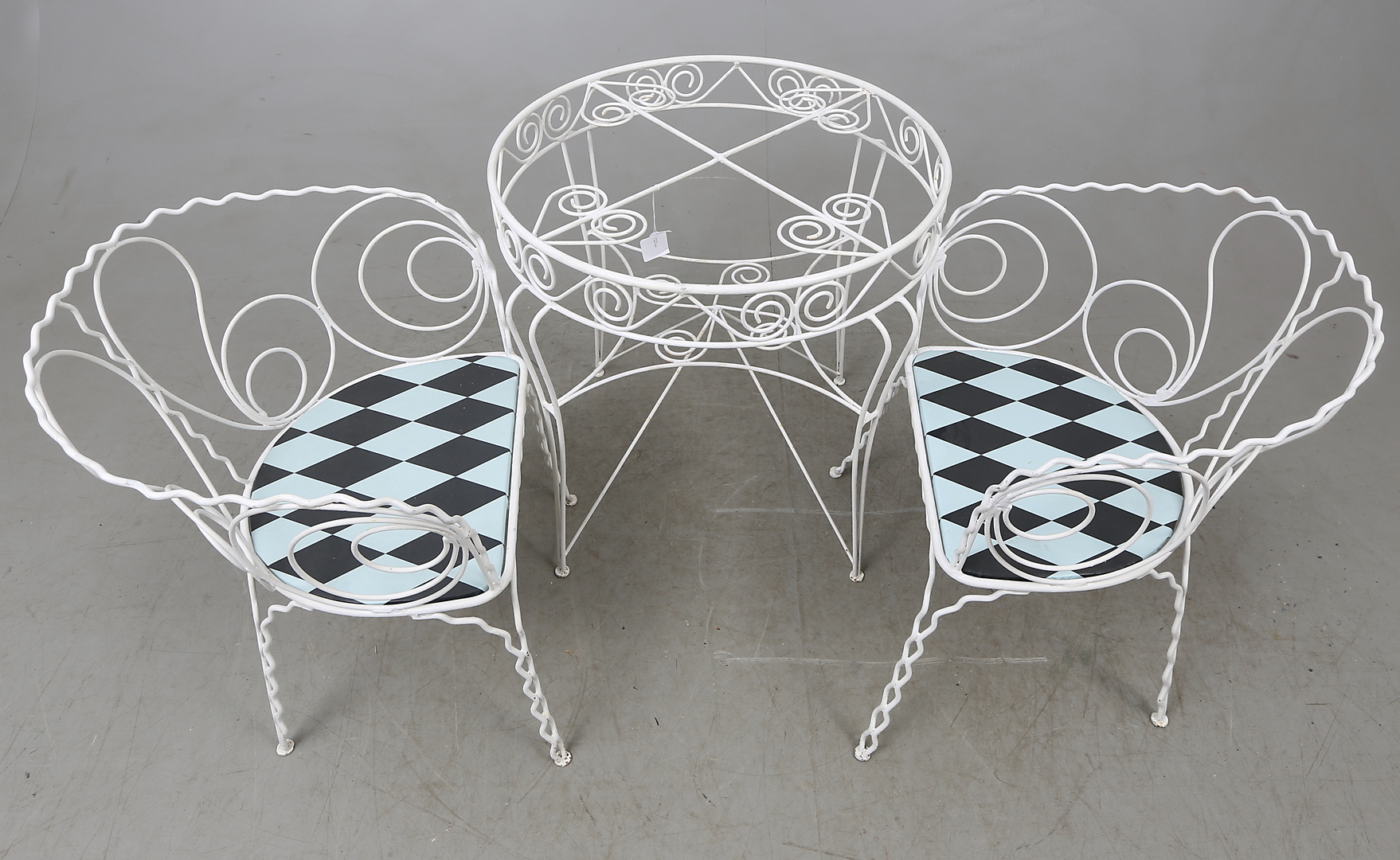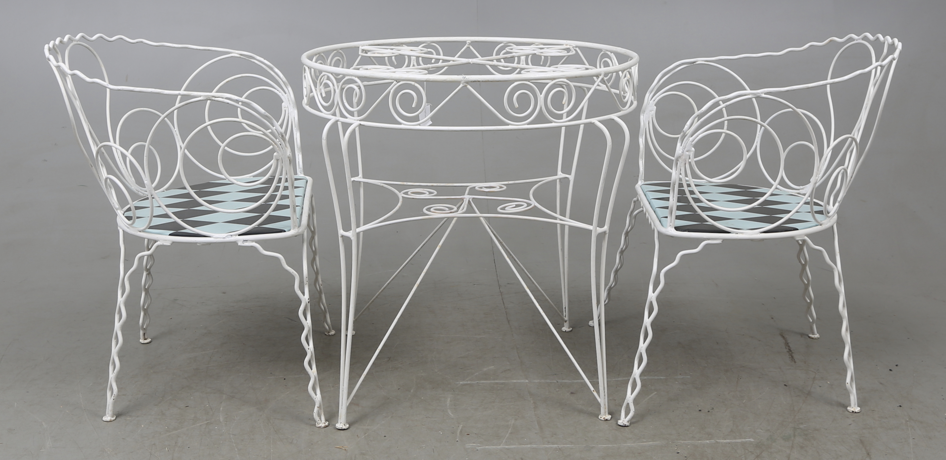 320055. CAFE CHAIRS, and table, 3 parts.