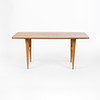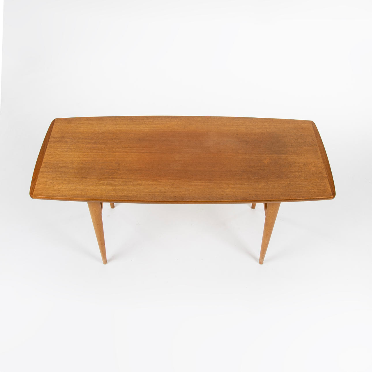 Coffee table, teak, slightly turned sides, 1950/60s Height 56 cm Length approx. 127 cm Width approx. 54 cm.