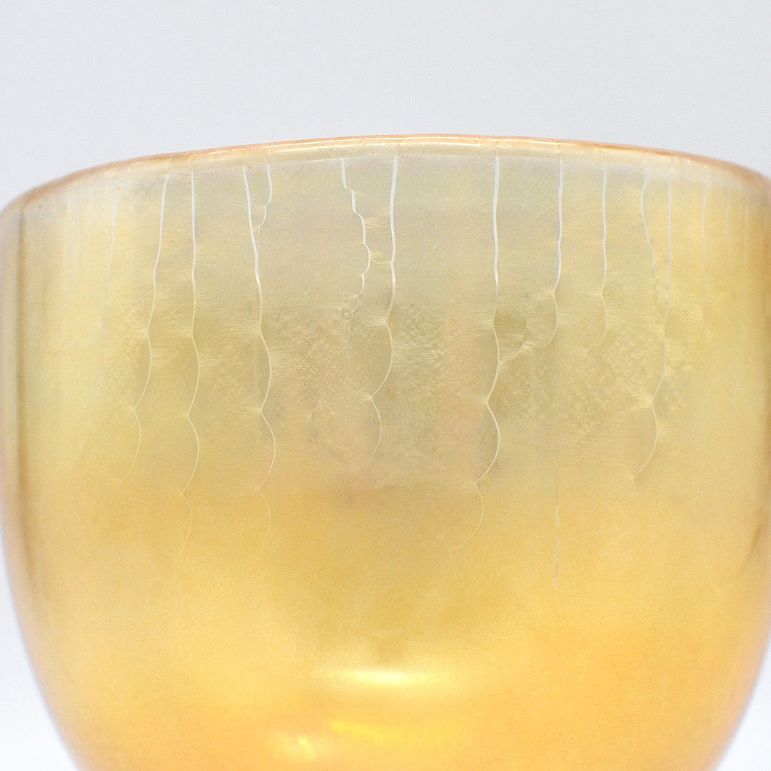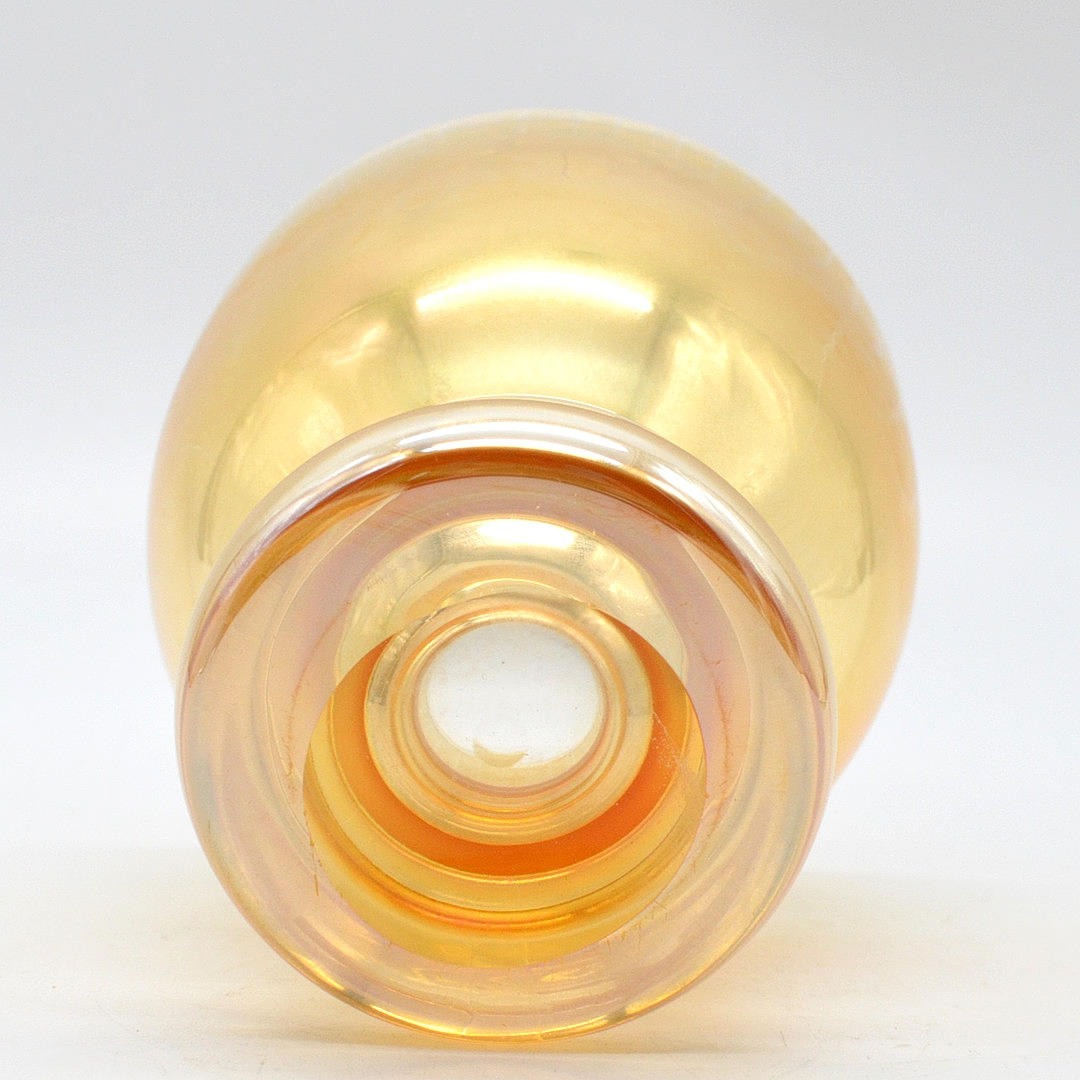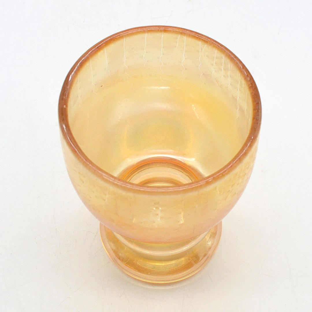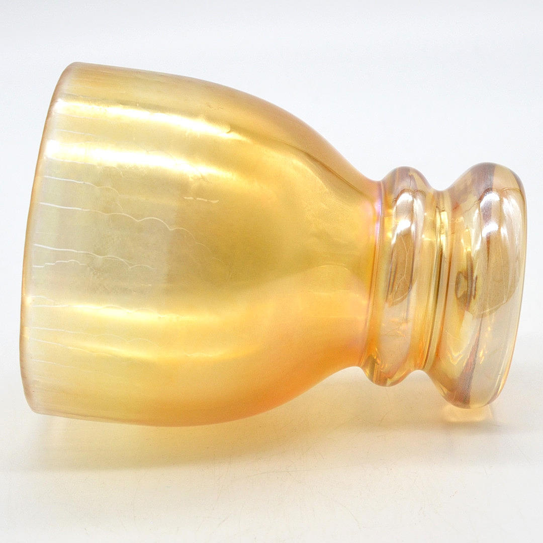 3203055. ERWIN EISCH. EISCH GLASHÜTTE, DESIGNER GLASS DRINKING CUP, ORANGE AND GOLD IRIZE, AROUND 1970S.