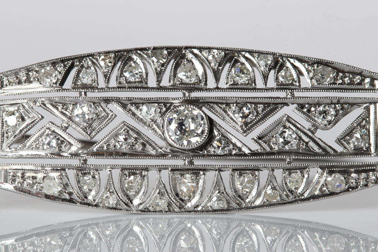 Platinum, unstamped, with brilliant and 8/8-cut diamonds, total approx. 0.65 ct.