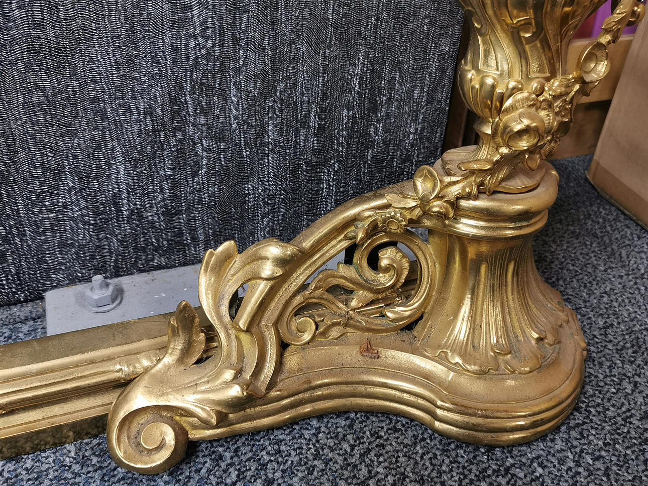 GILT BRASS FIREPLACE FENDER.