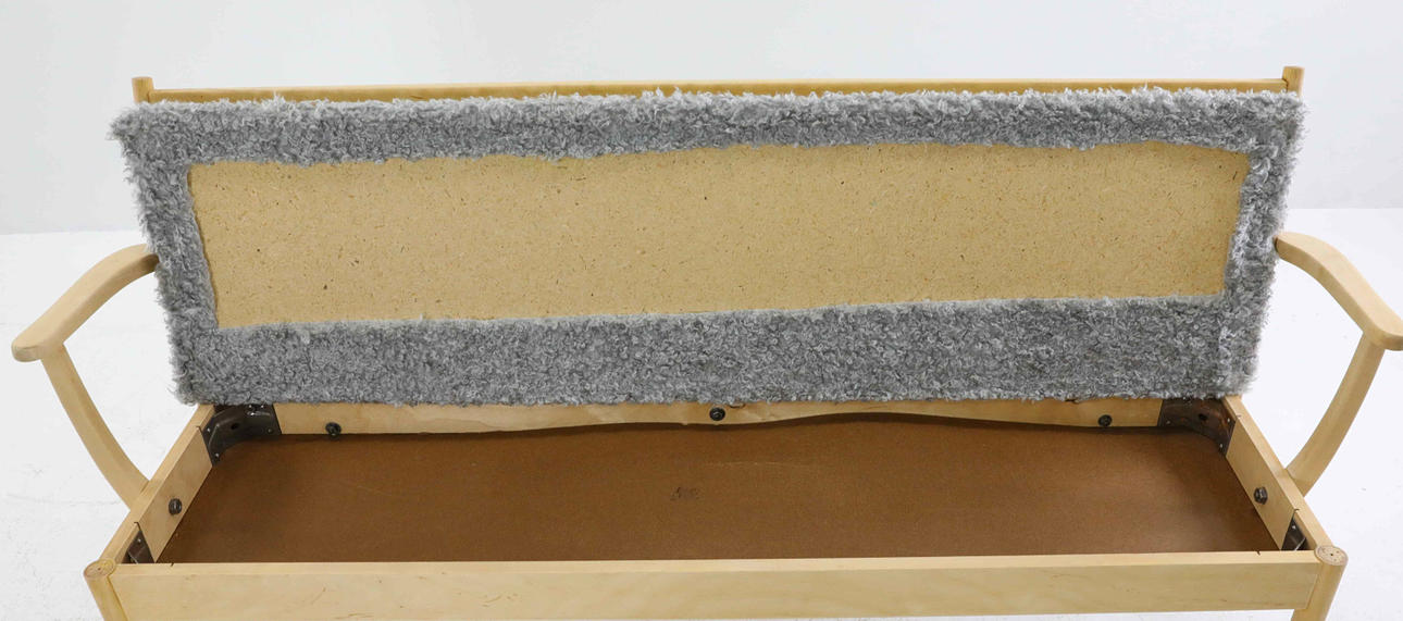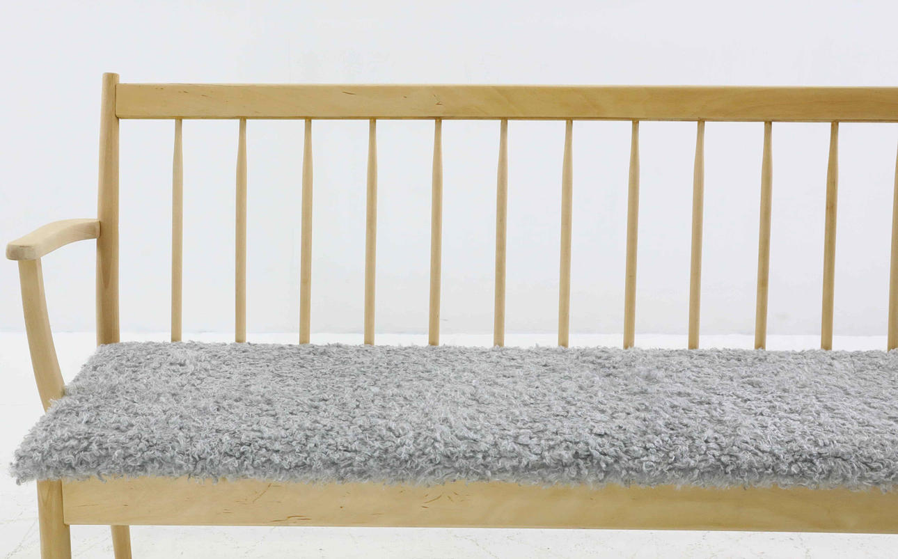 Birch, sheepskin imitation. Branded Edsby Verken. Height 80 cm Length 162 cm Seat height 44 cm.