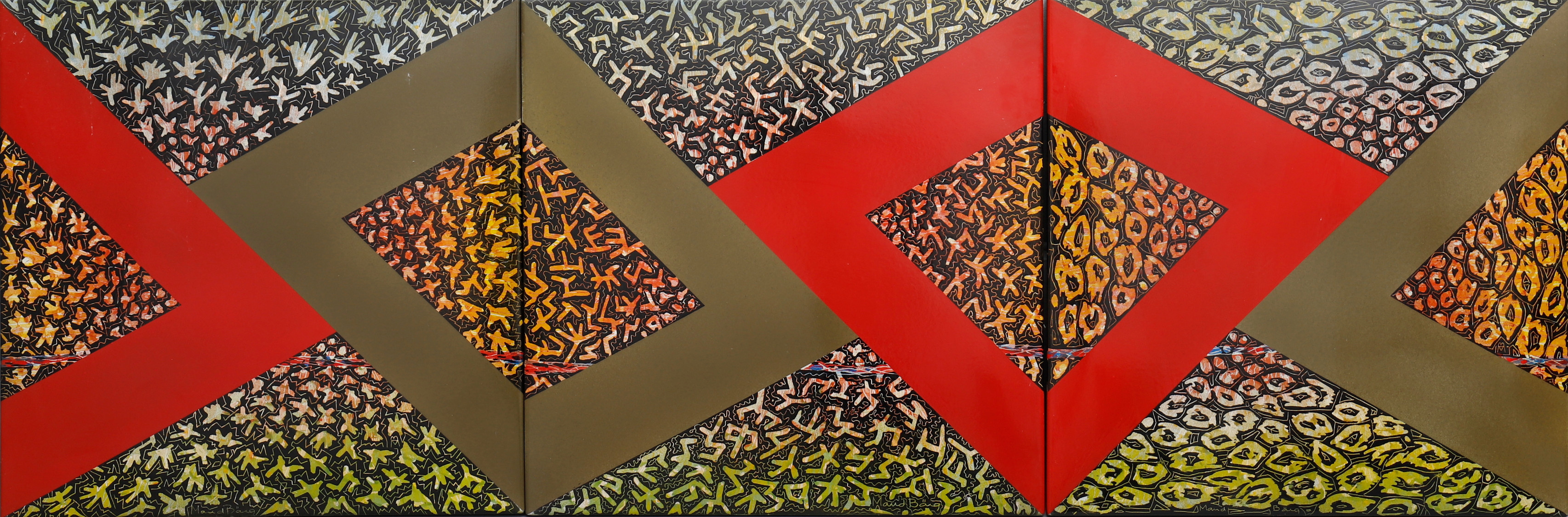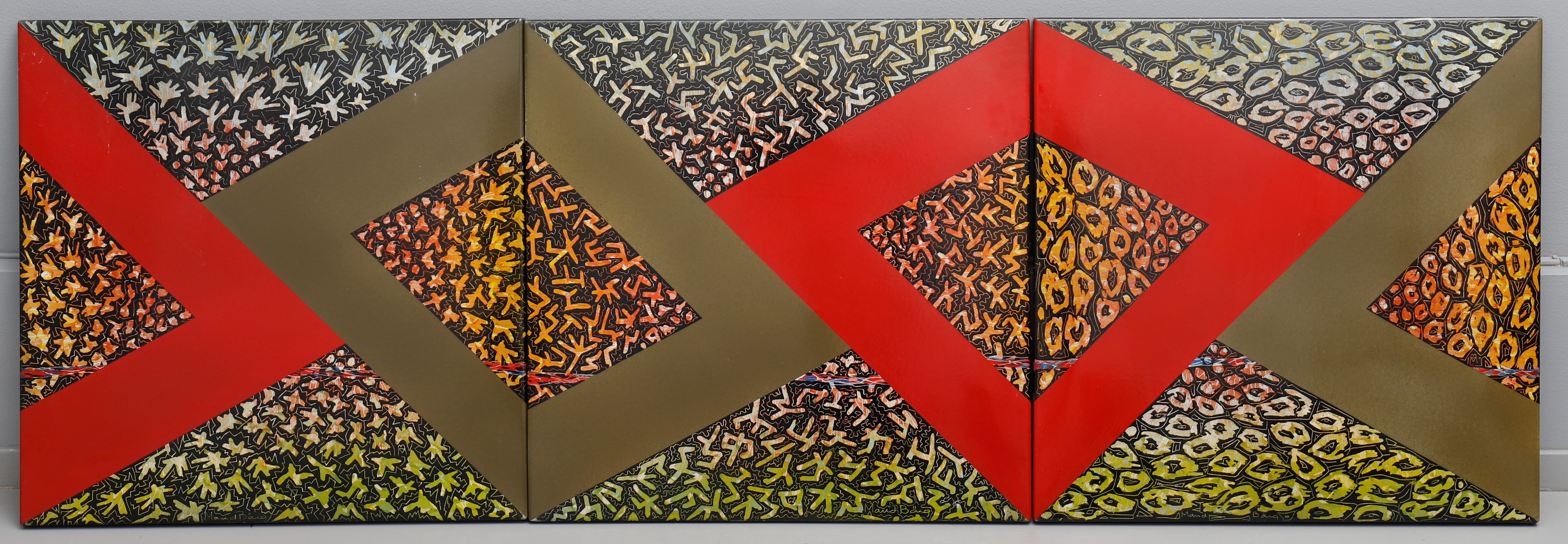 3211403. MAUD BÄRG (1935-2023). “RED & OLIVE”, TRIPTYCH.