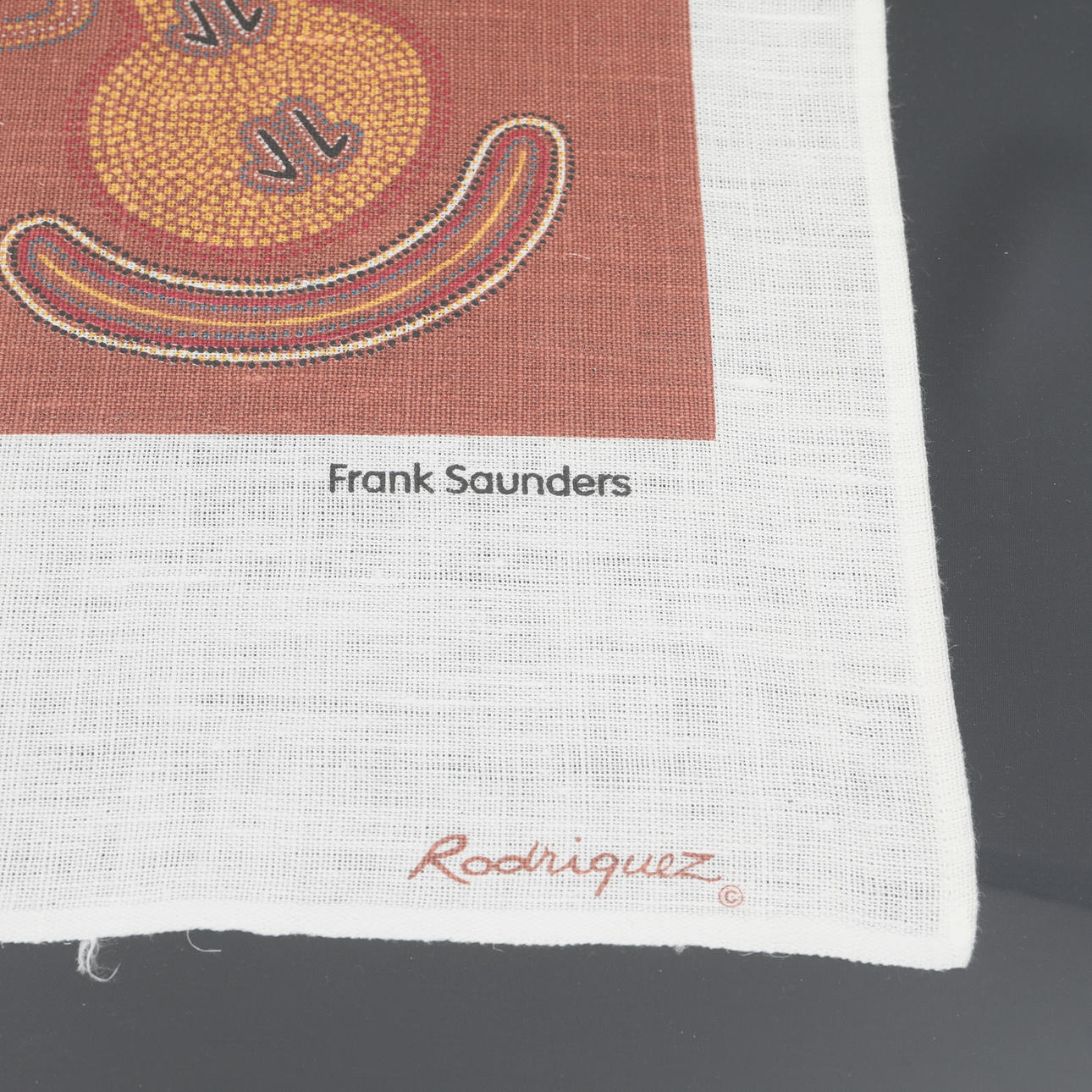 FRANK SAUNDERS. textile, framed, “Old man Baruda”.