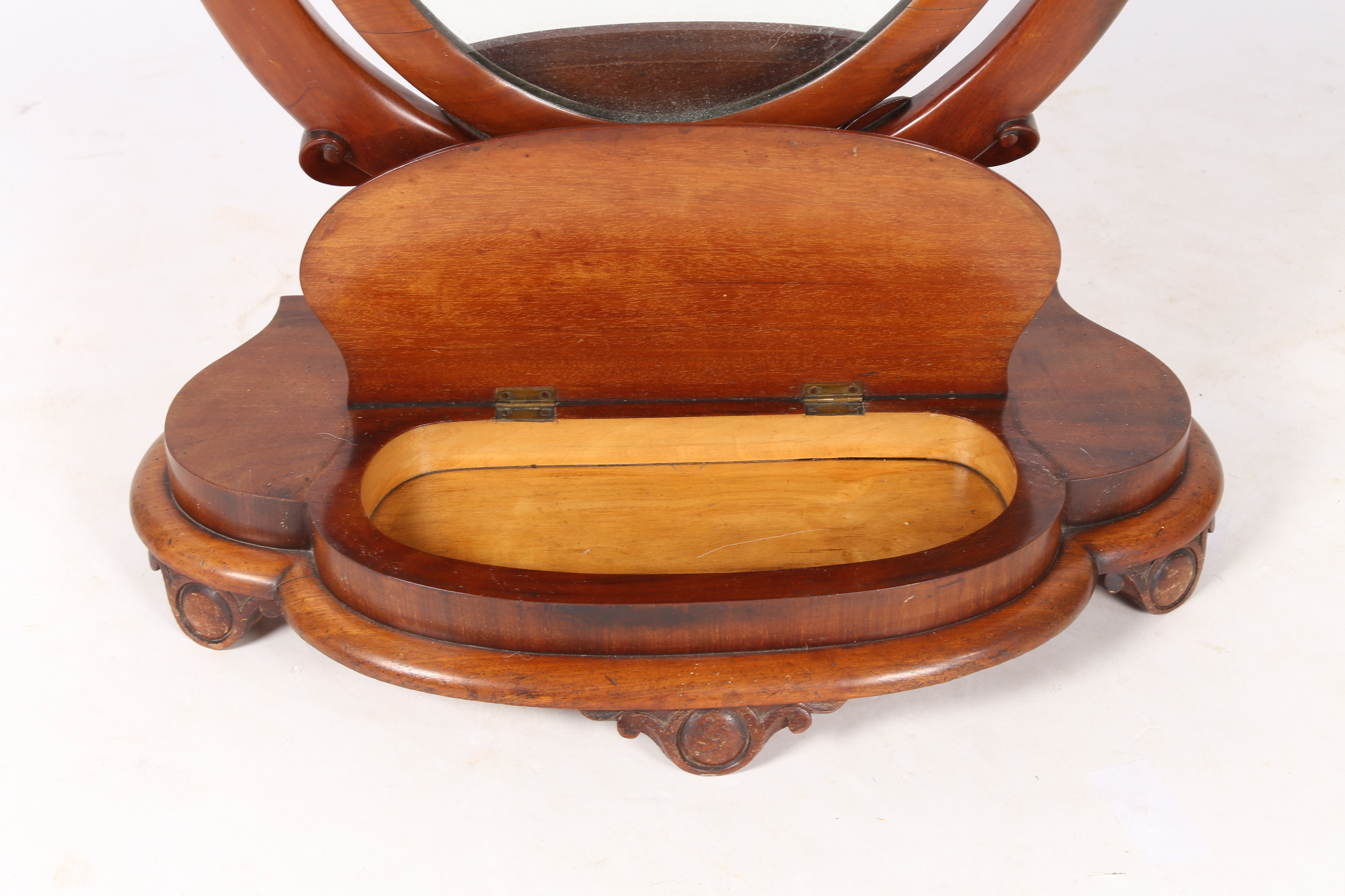 3213551. A VICTORIAN MAHOGANY OVAL DRESSING TABLE MIRROR.