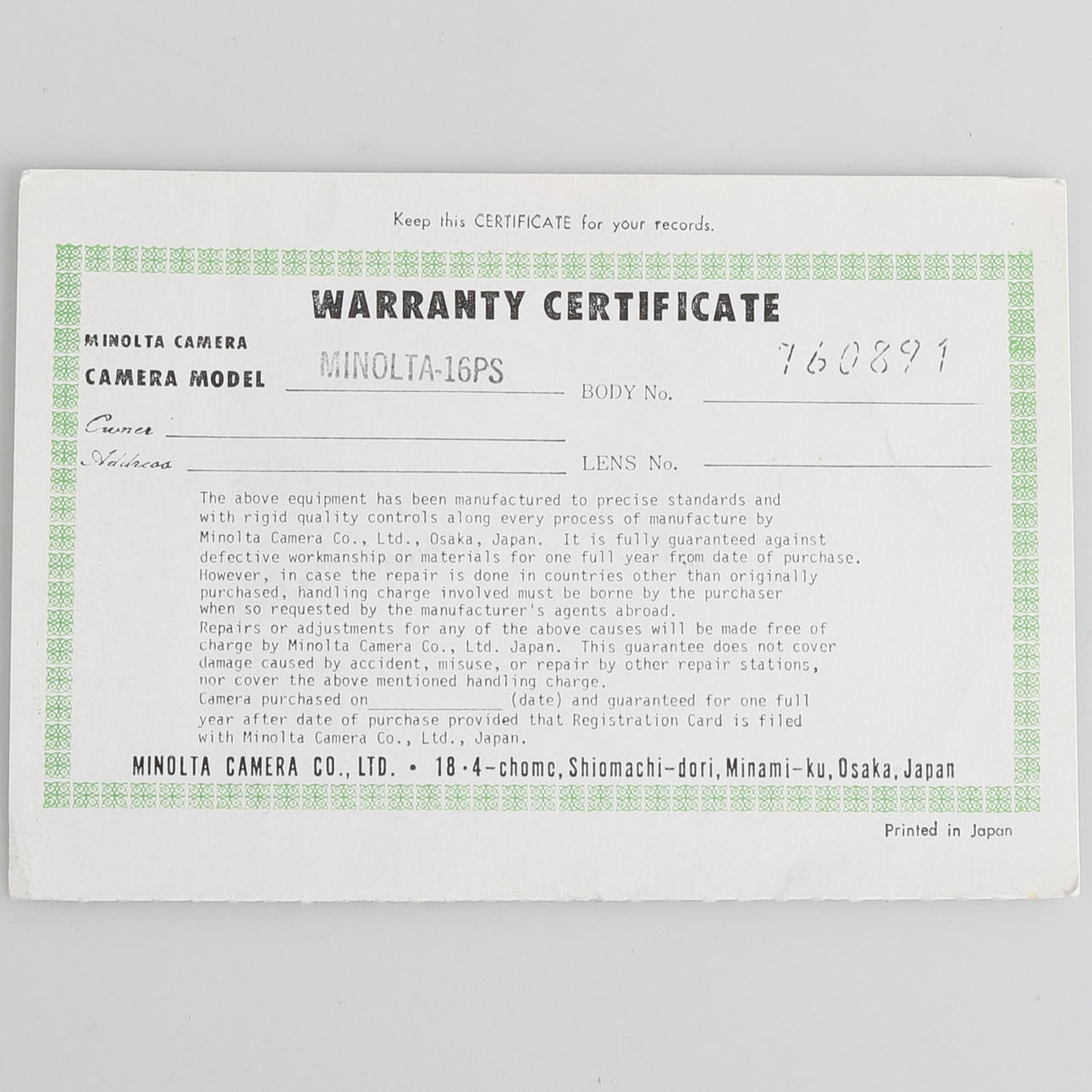 3215590. MINI CAMERA, Minolta 16 Ps, 1960s, Japan.