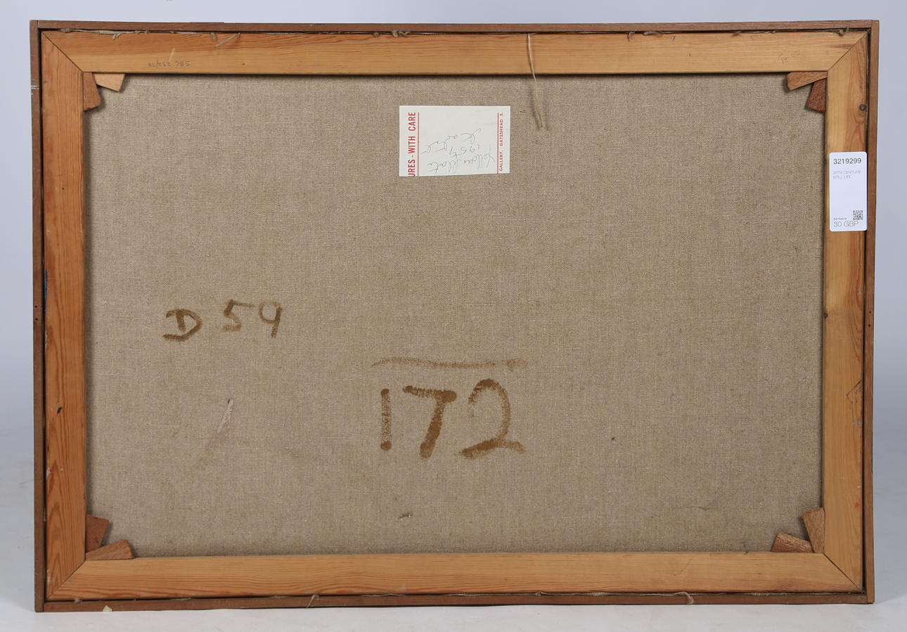 20th century still life, oil on canvass, housed within a wooden frame 94cm by 66cm including frame.