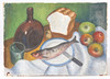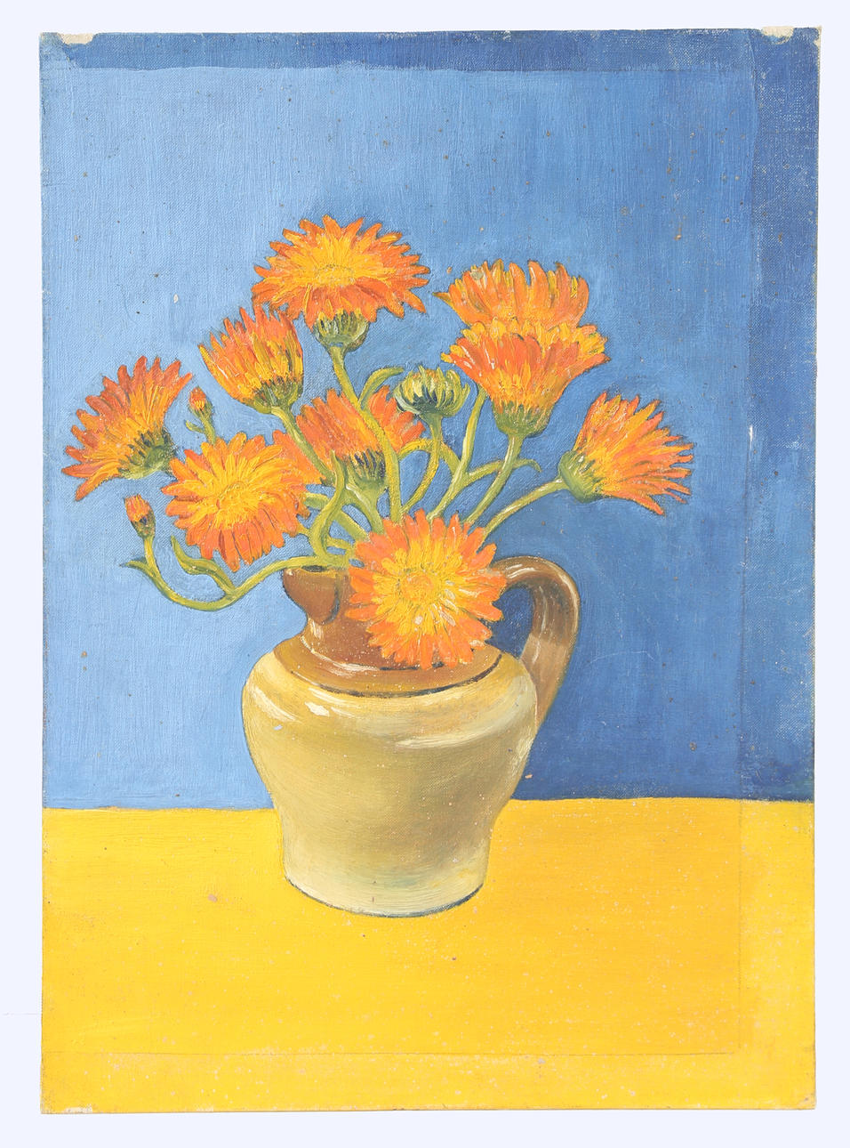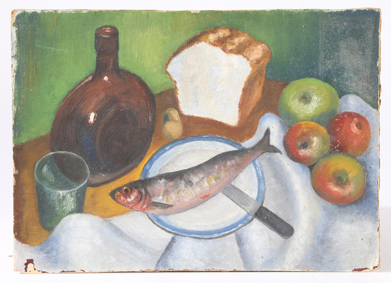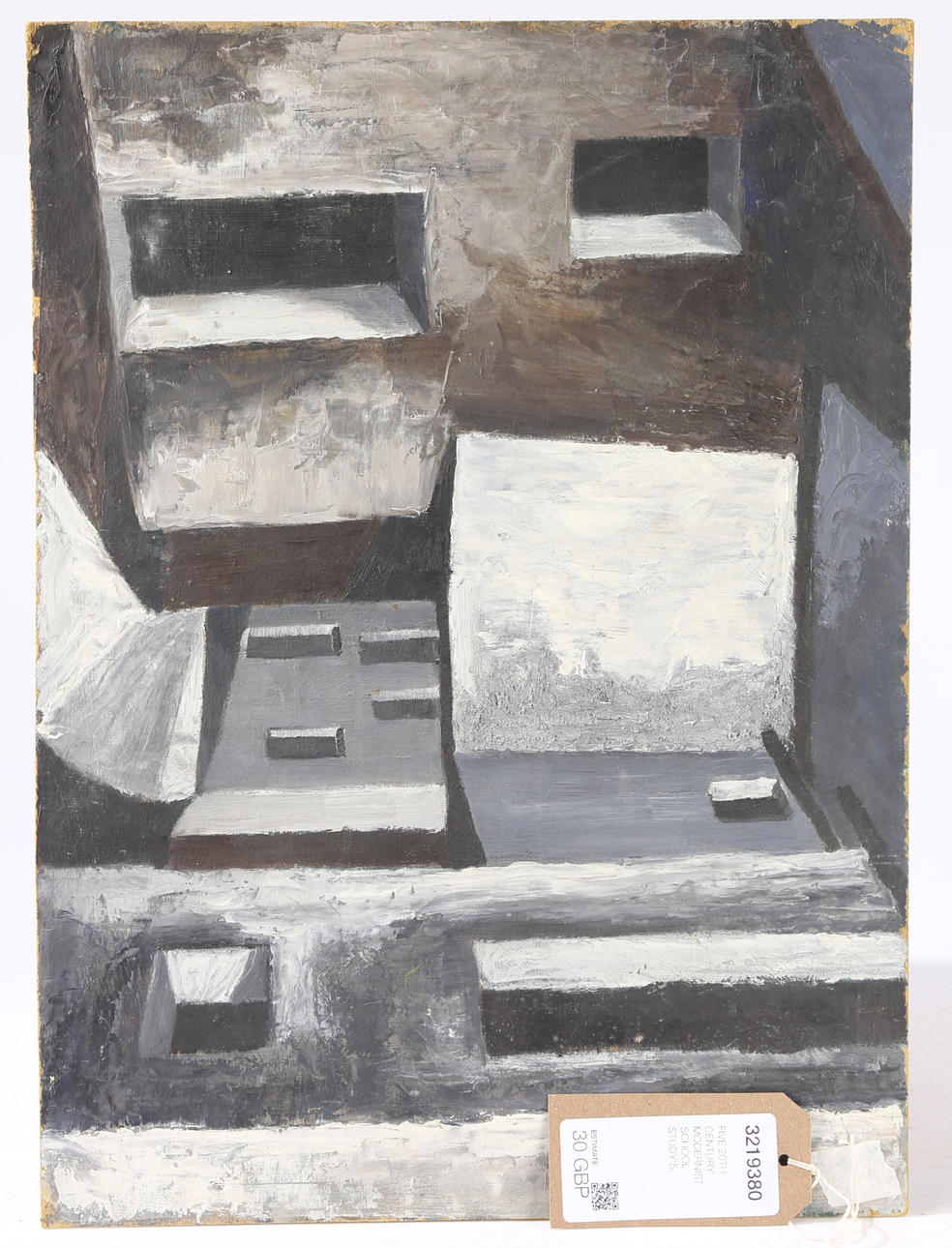 Five 20th century modernist school study's, to include still lives and landscapes, unframed, oil on boards, largest 48cm by 36cm.