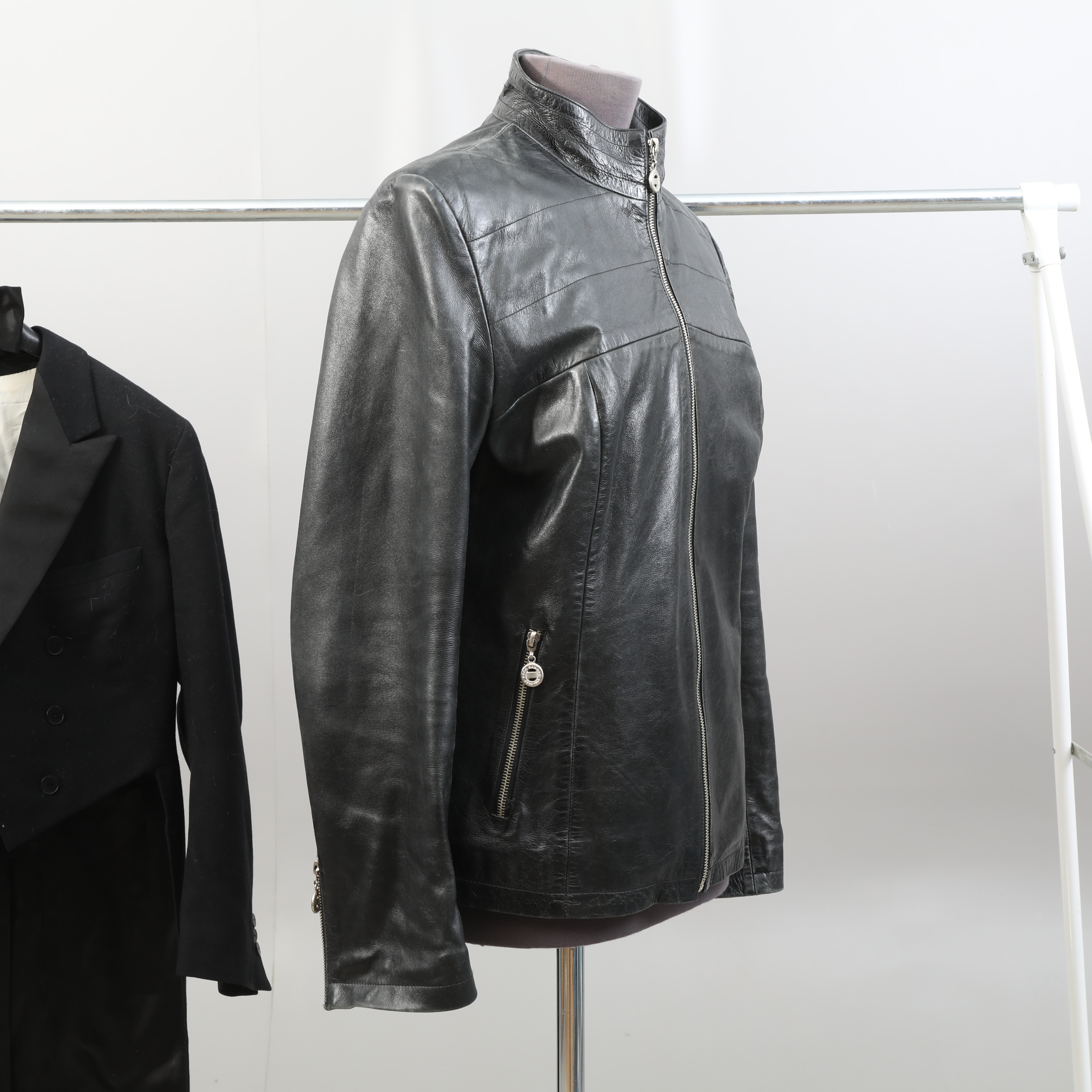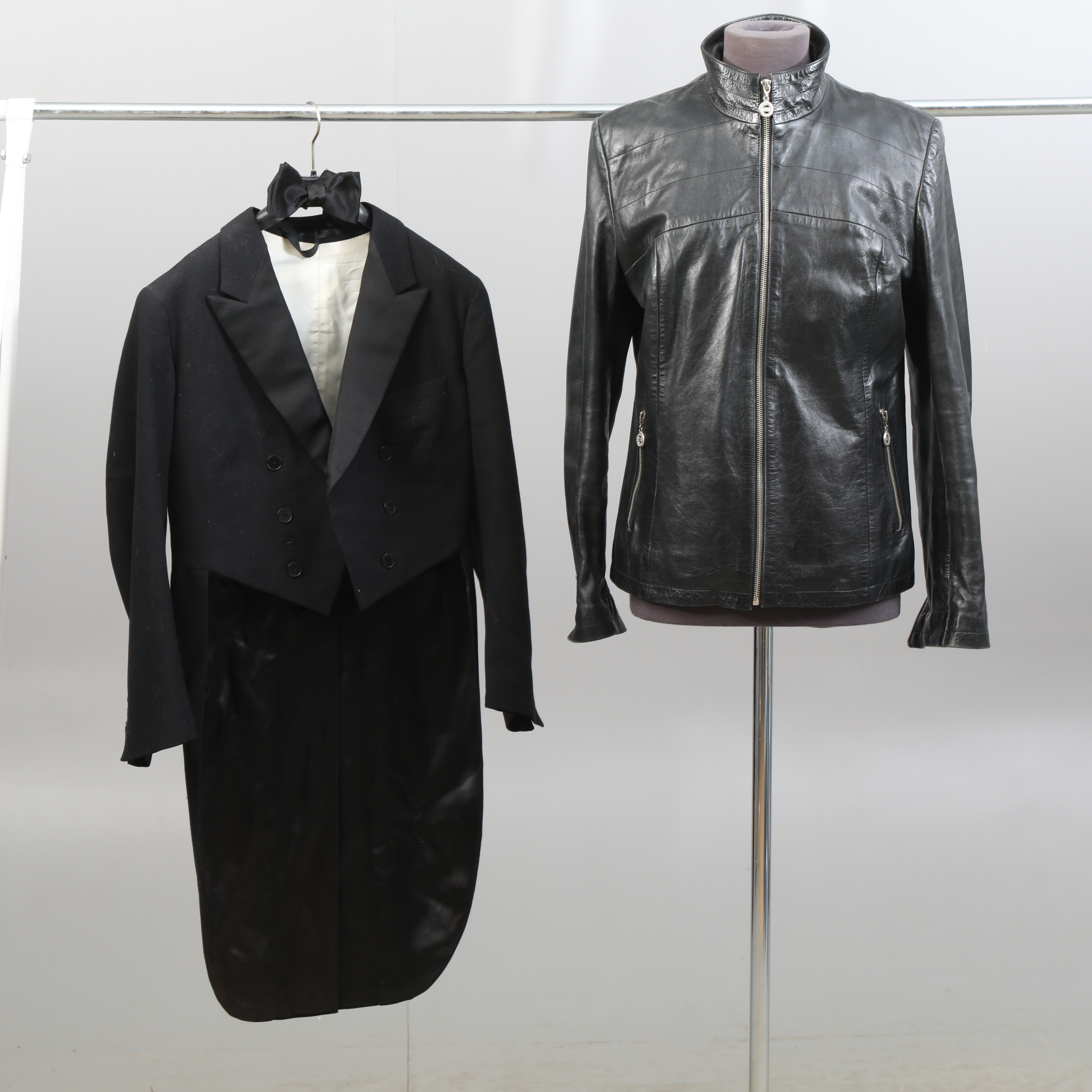 3219518. FRACK, jacket, vest, bow tie, leather jacket.