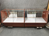 A Formica and mahogany veneered, glass-shelved jewellery shop/ haberdashery counter display cabinet, L. 212cm. H. 103cm. D. 60cm.