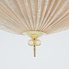 Polished brass and pleated plastic lampshade. Four points of light. Diameter 80 cm, height approx. 30 cm.