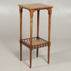 3224405. A SQUARE WALNUT TWO TIERED PLANT STAND.