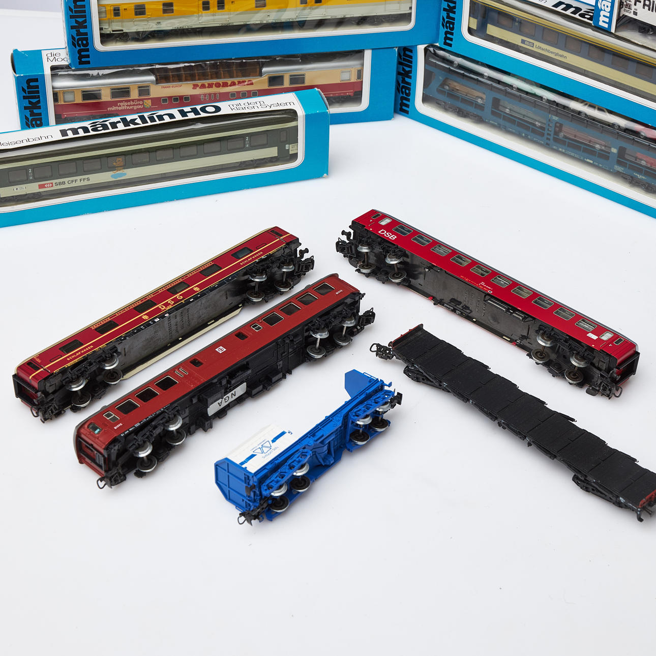 MÄRKLIN, 16 dlr, passenger and freight wagons, in original packaging.