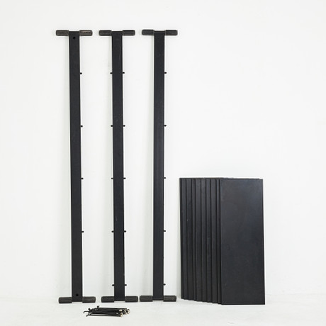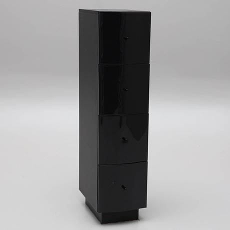 Pine, blue painted box fronts. 2 dressers with 4 drawers, width 52 cm, height 70 cm, depth 50 cm. 2 overhead shelves, height 104.5 cm, depth 28 cm.
