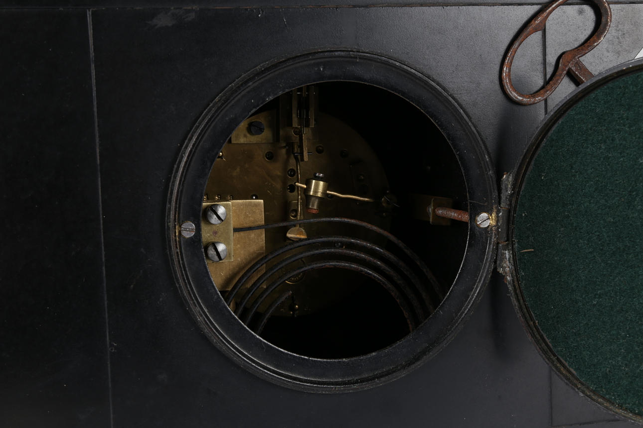3229147. A VICTORIAN BLACK SLATE MANTLE CLOCK.