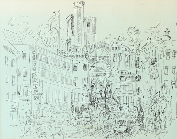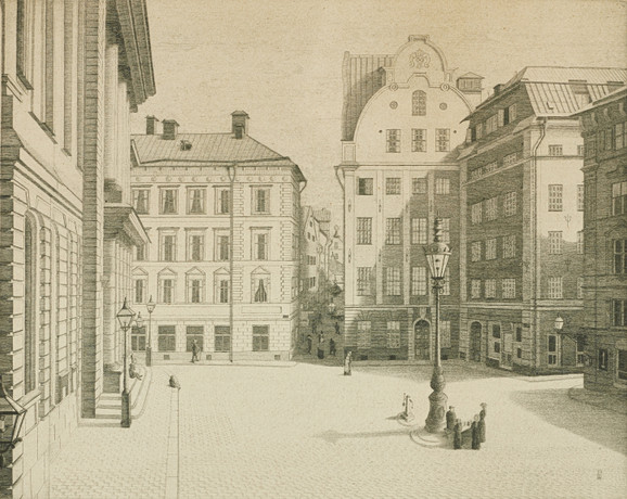 322936. REINHOLD LJUNGGREN. Stortorget, Gamla Stan, color lithograph, signed and numbered 178/310.