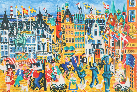 REINHOLD LJUNGGREN. Stortorget, Gamla Stan, color lithograph, signed and numbered 178/310.
