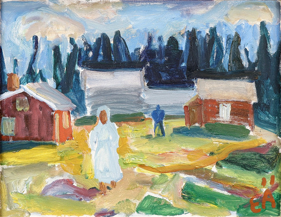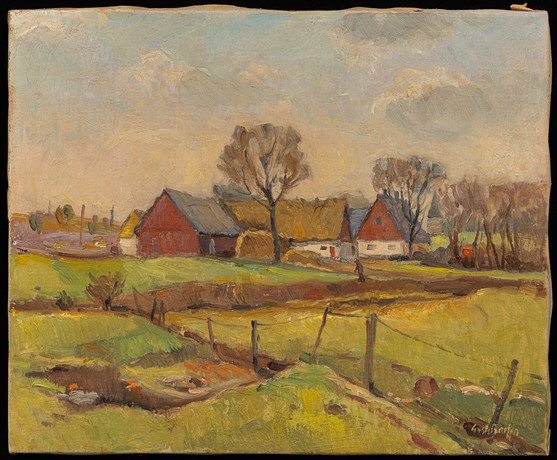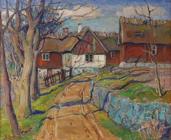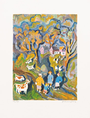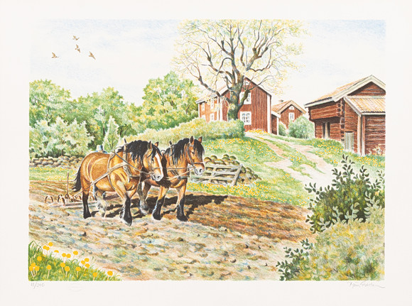 3229415. JOHAN LUNDGREN. Farm scene, lithograph in colours, signed.