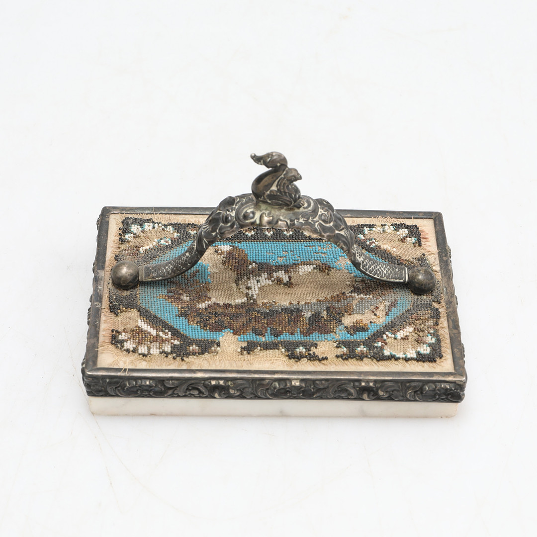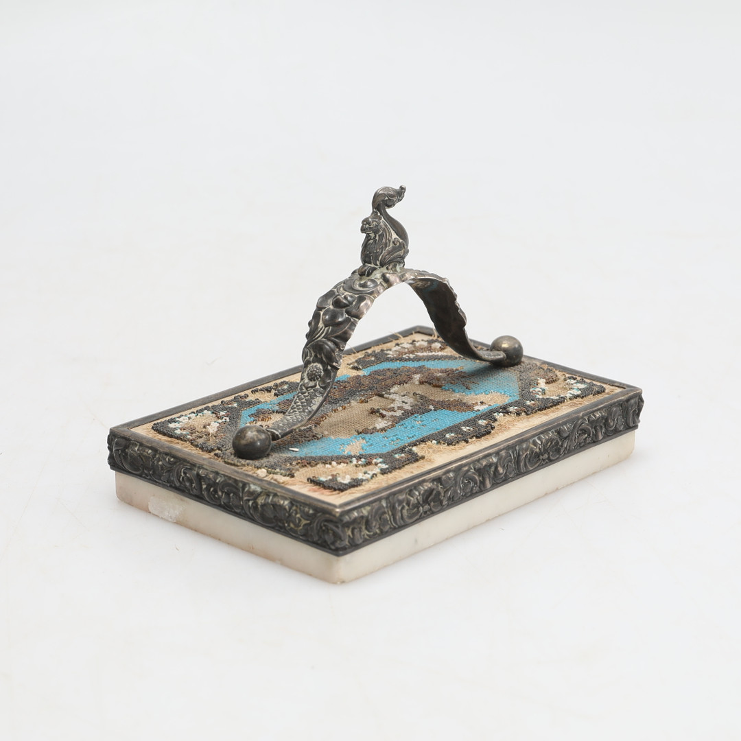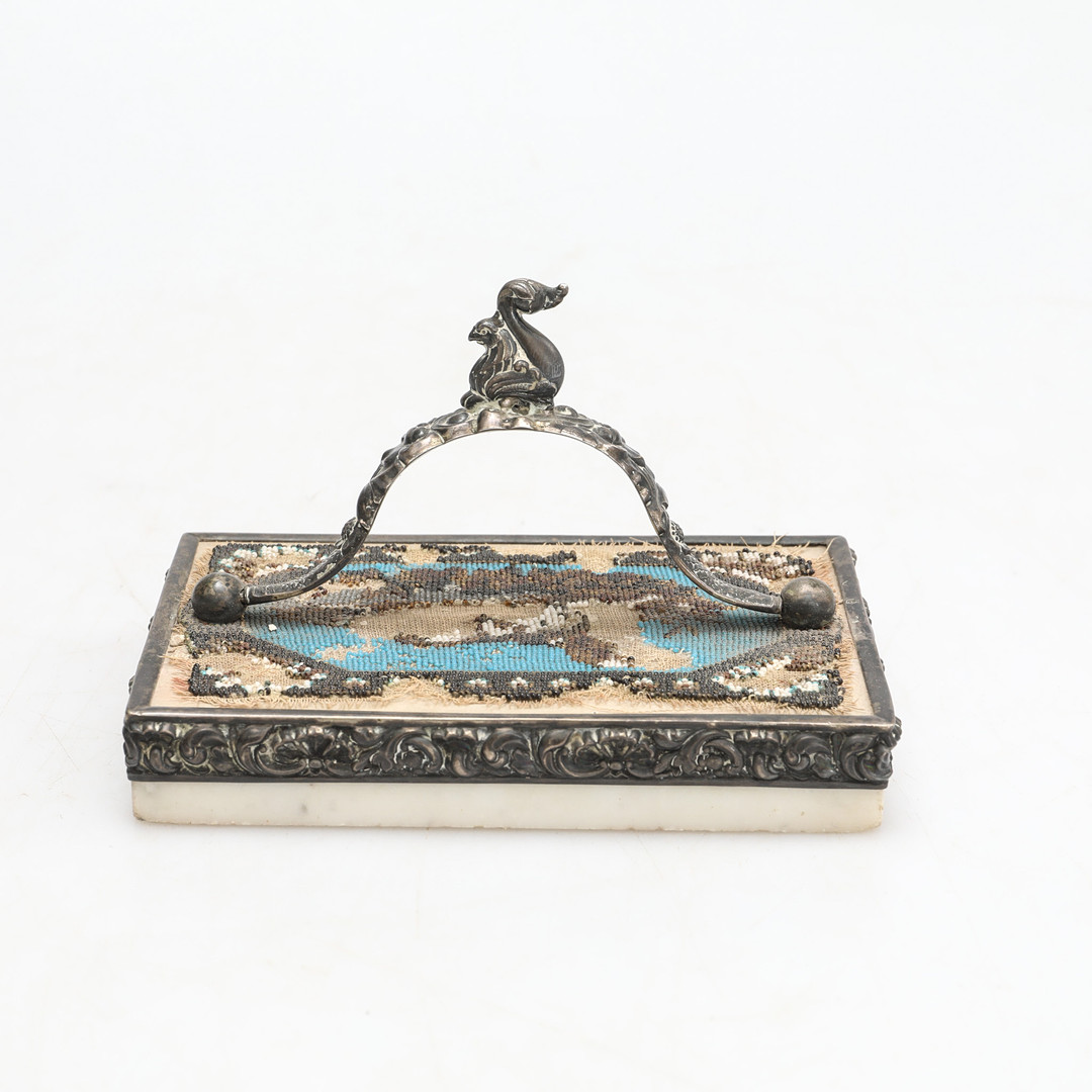 3230753. PAPERWEIGHT, marble, silver and embroidery.