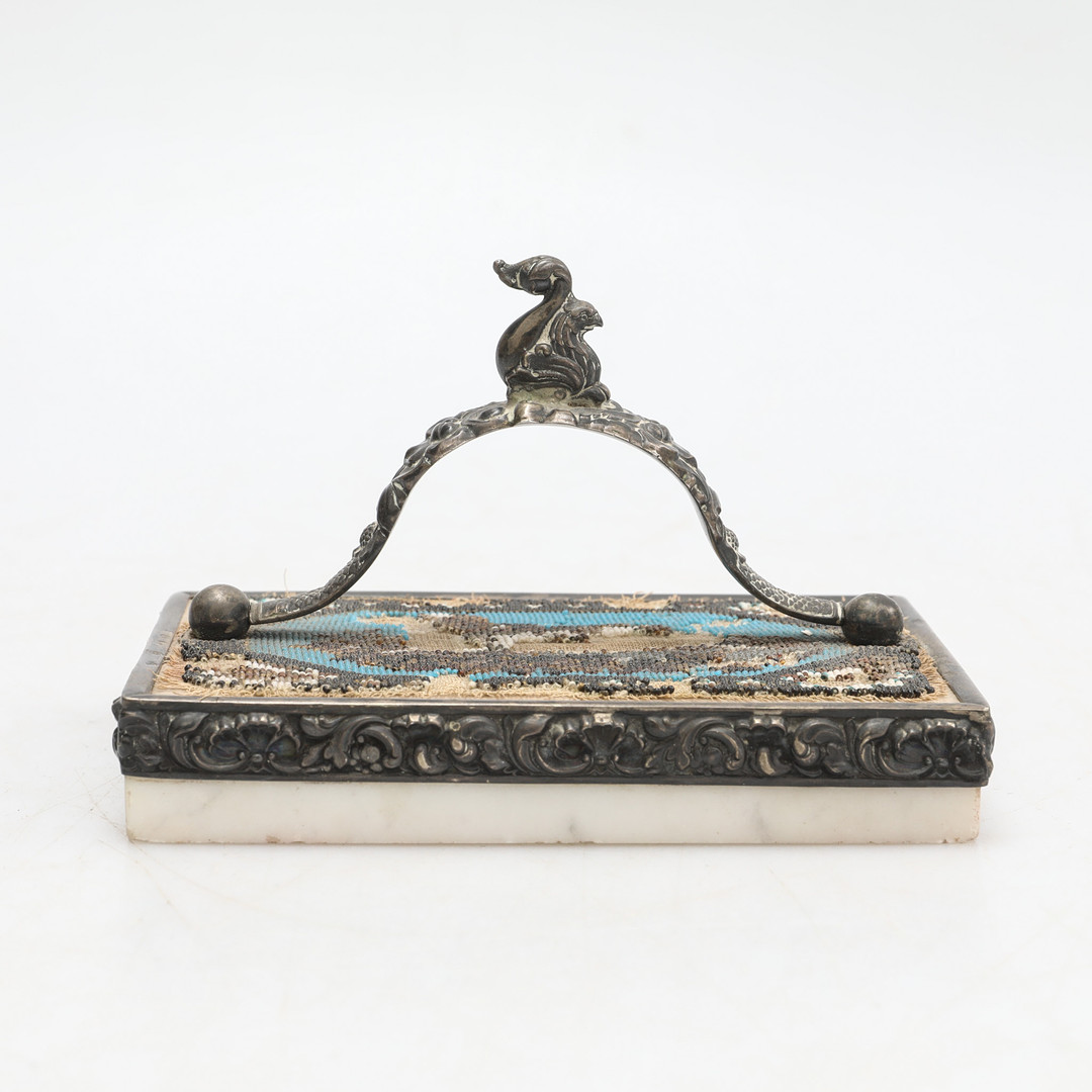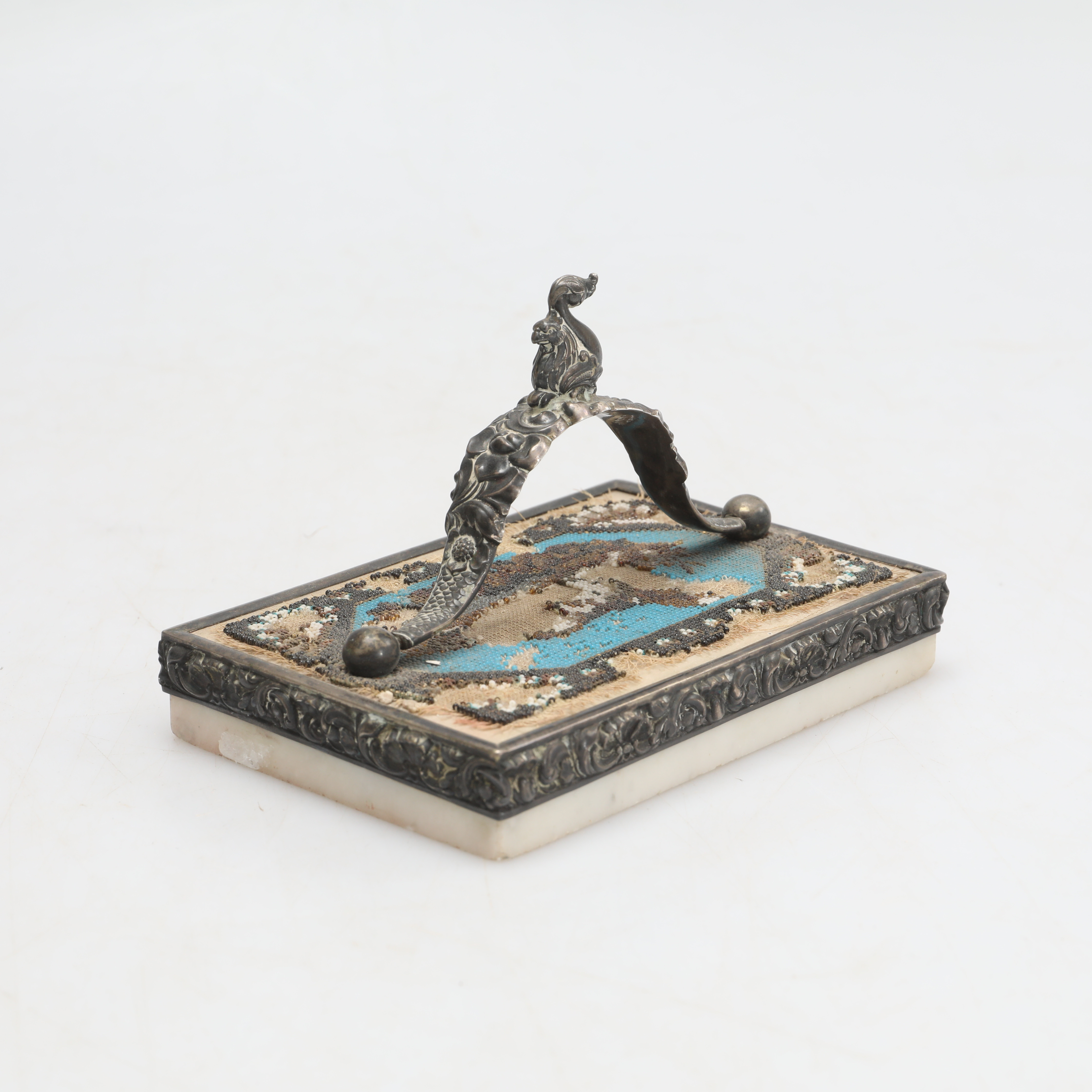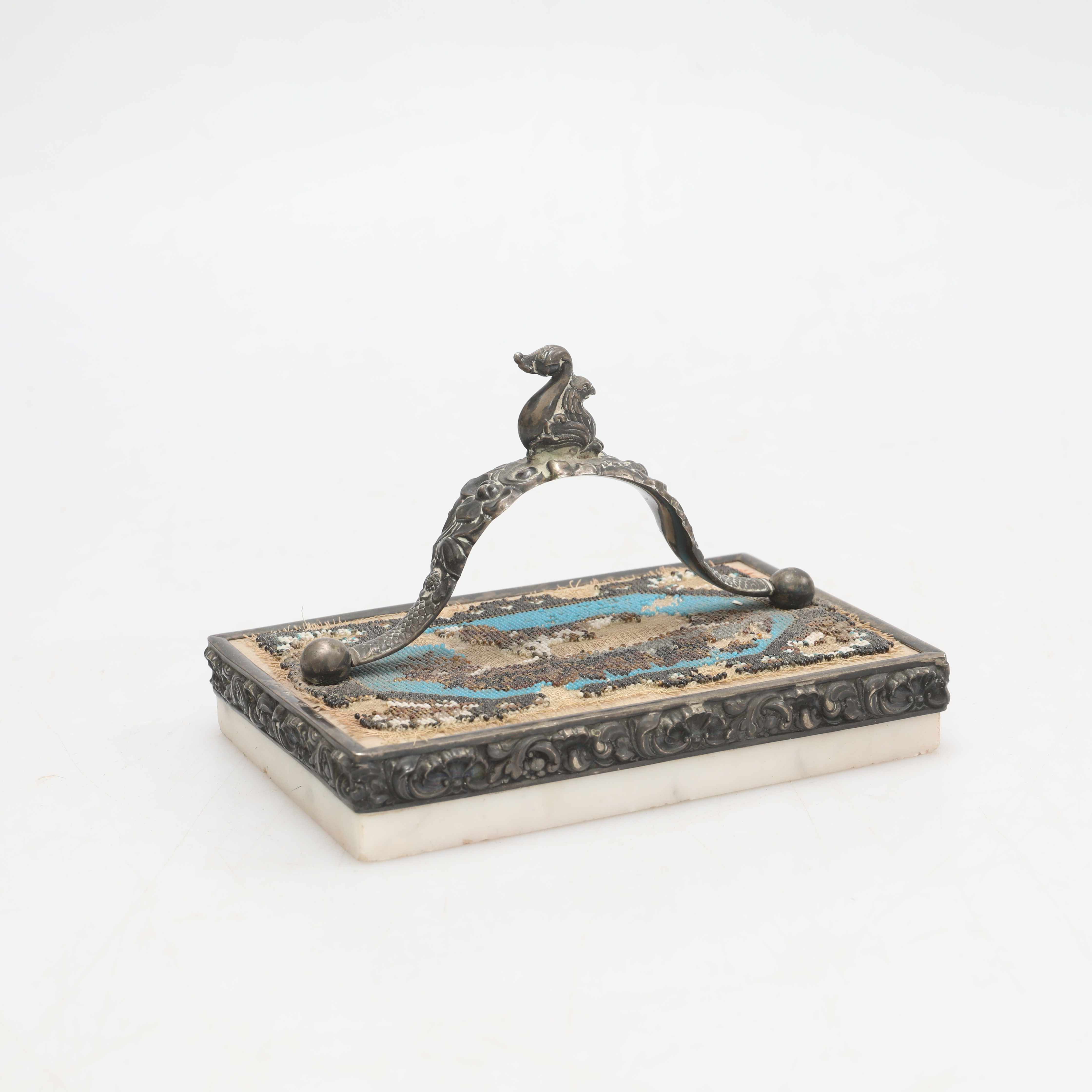 3230753. PAPERWEIGHT, marble, silver and embroidery.