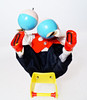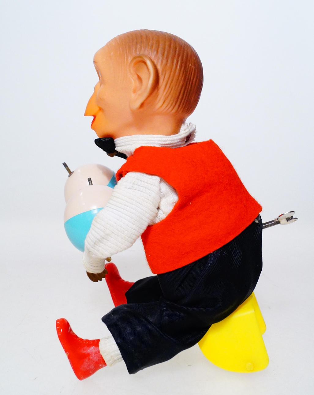 Parts of the chair and shoe soles are missing.