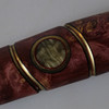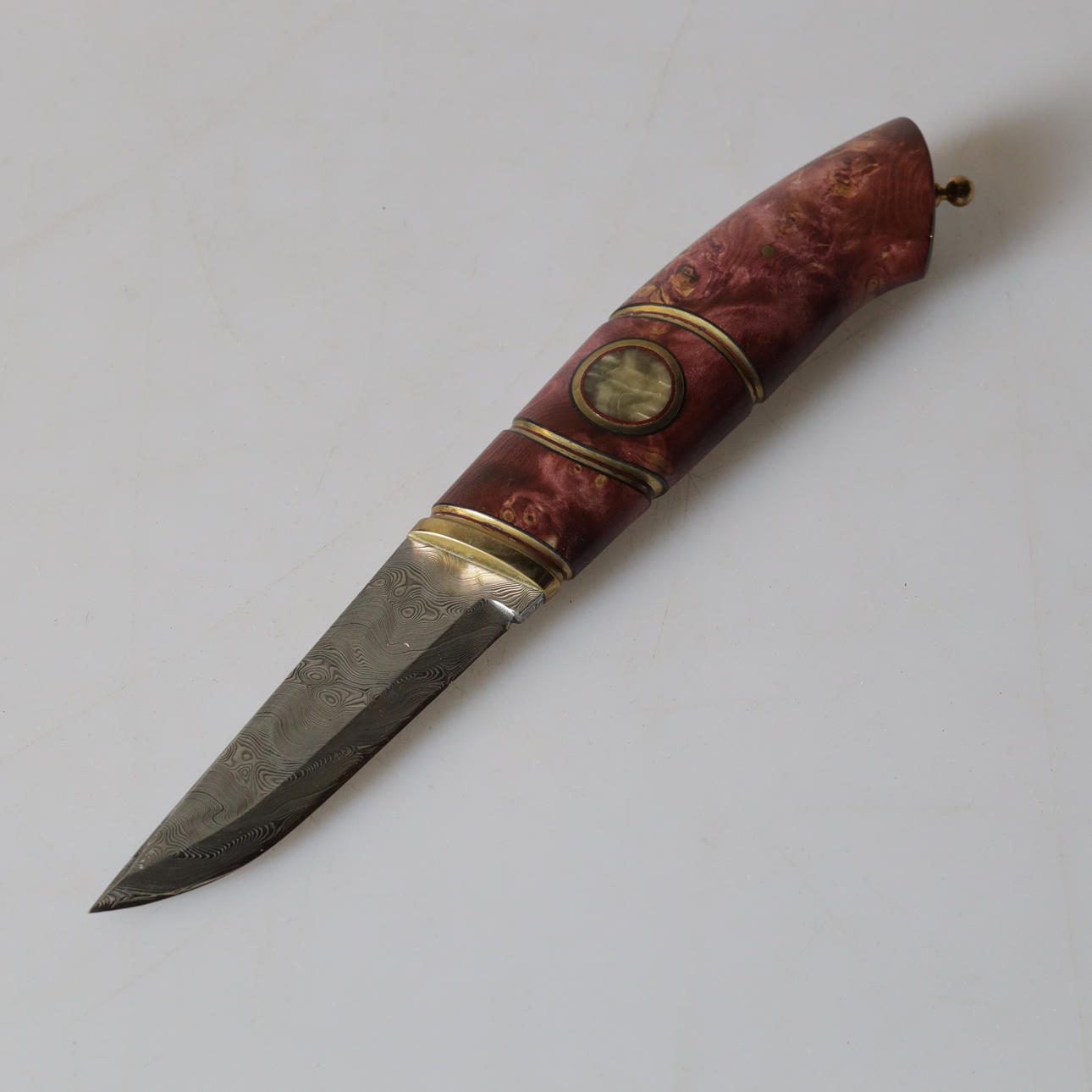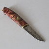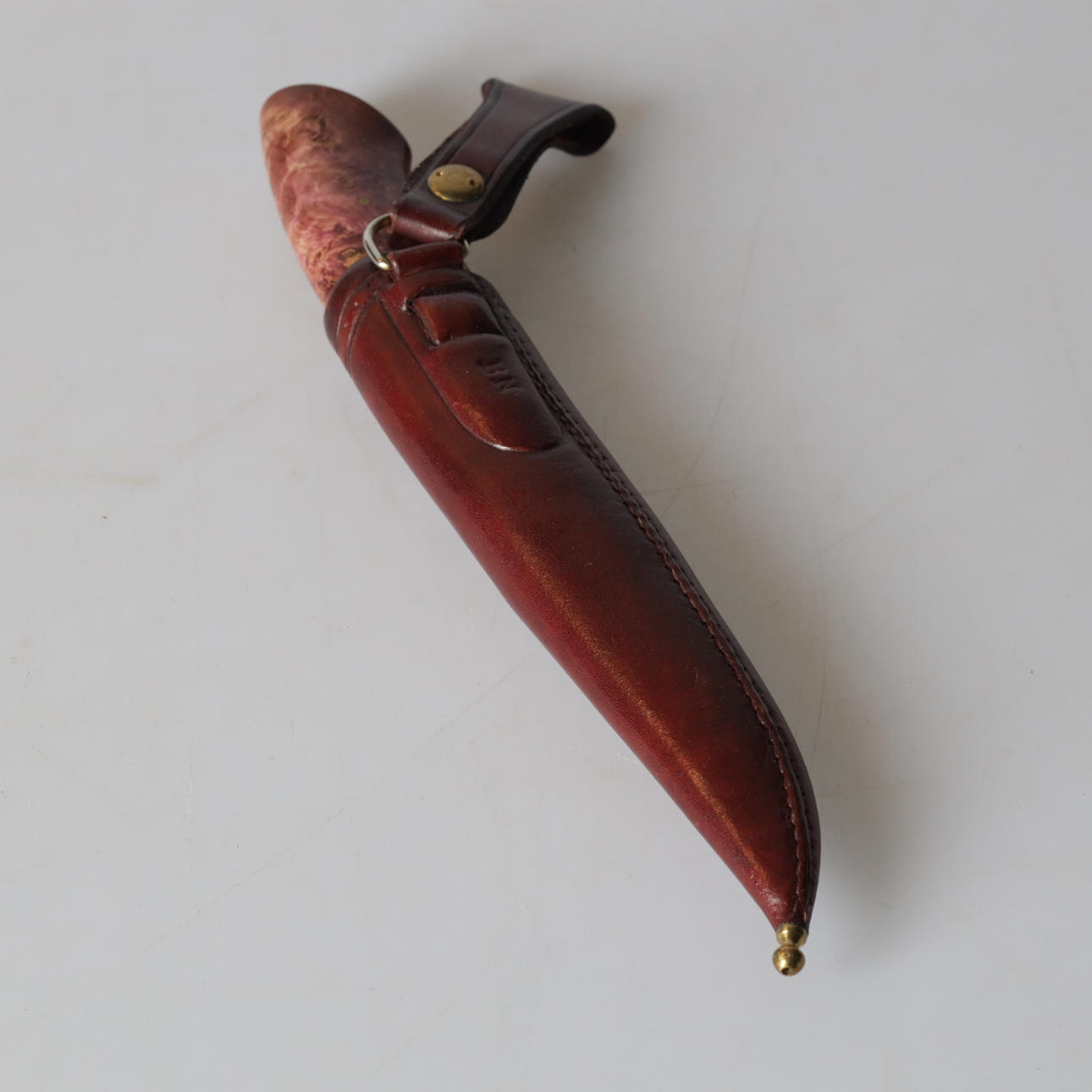 Damaged steel blade. Shaft in colored masur. Leather pods. Knife length approx. 22 cm.