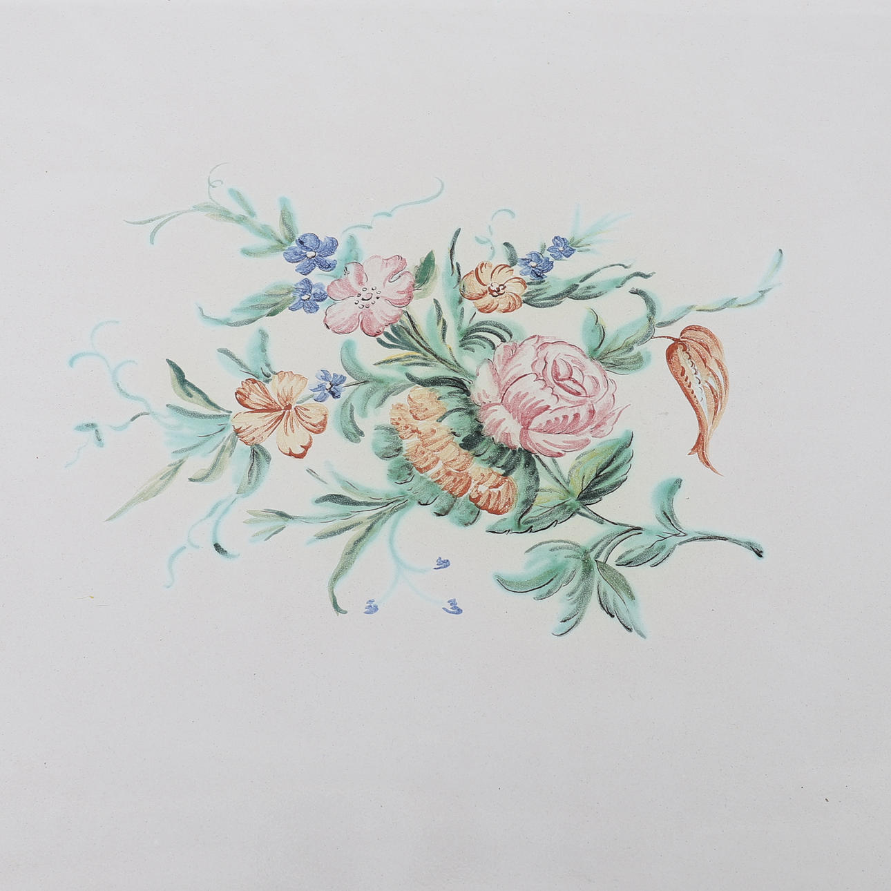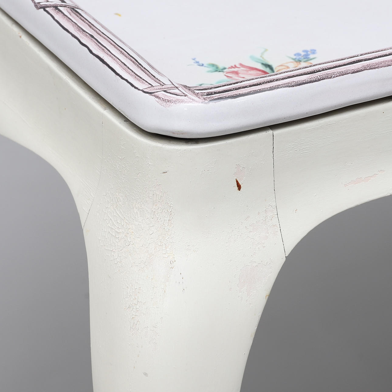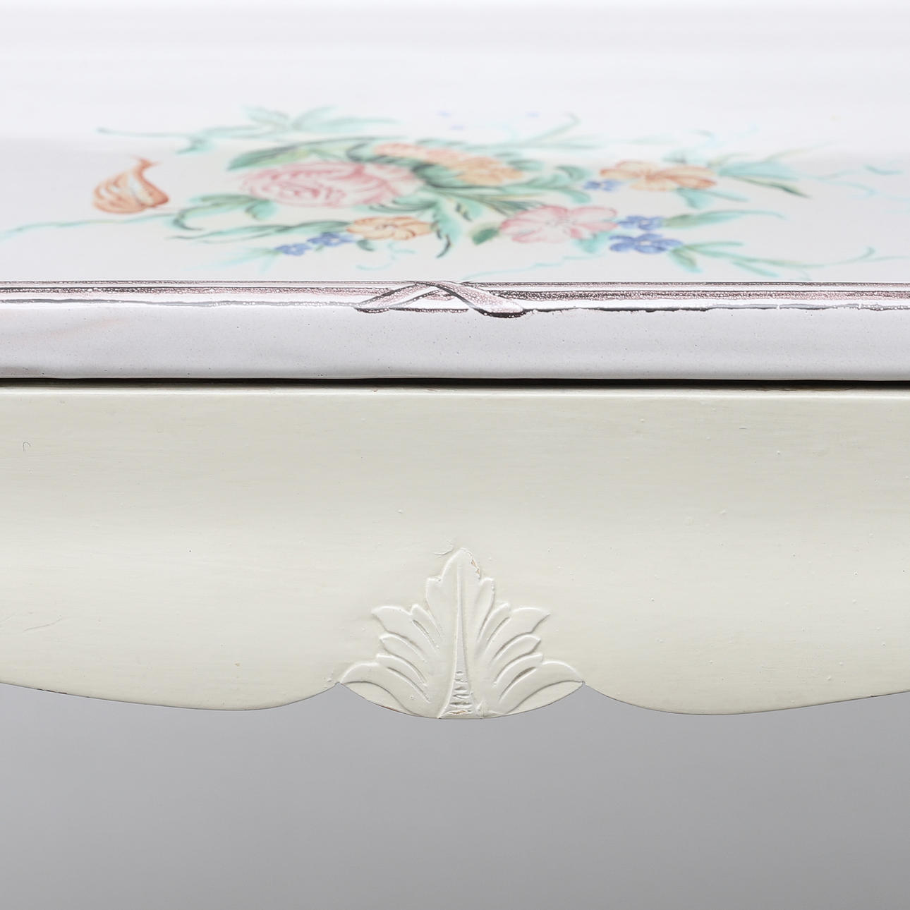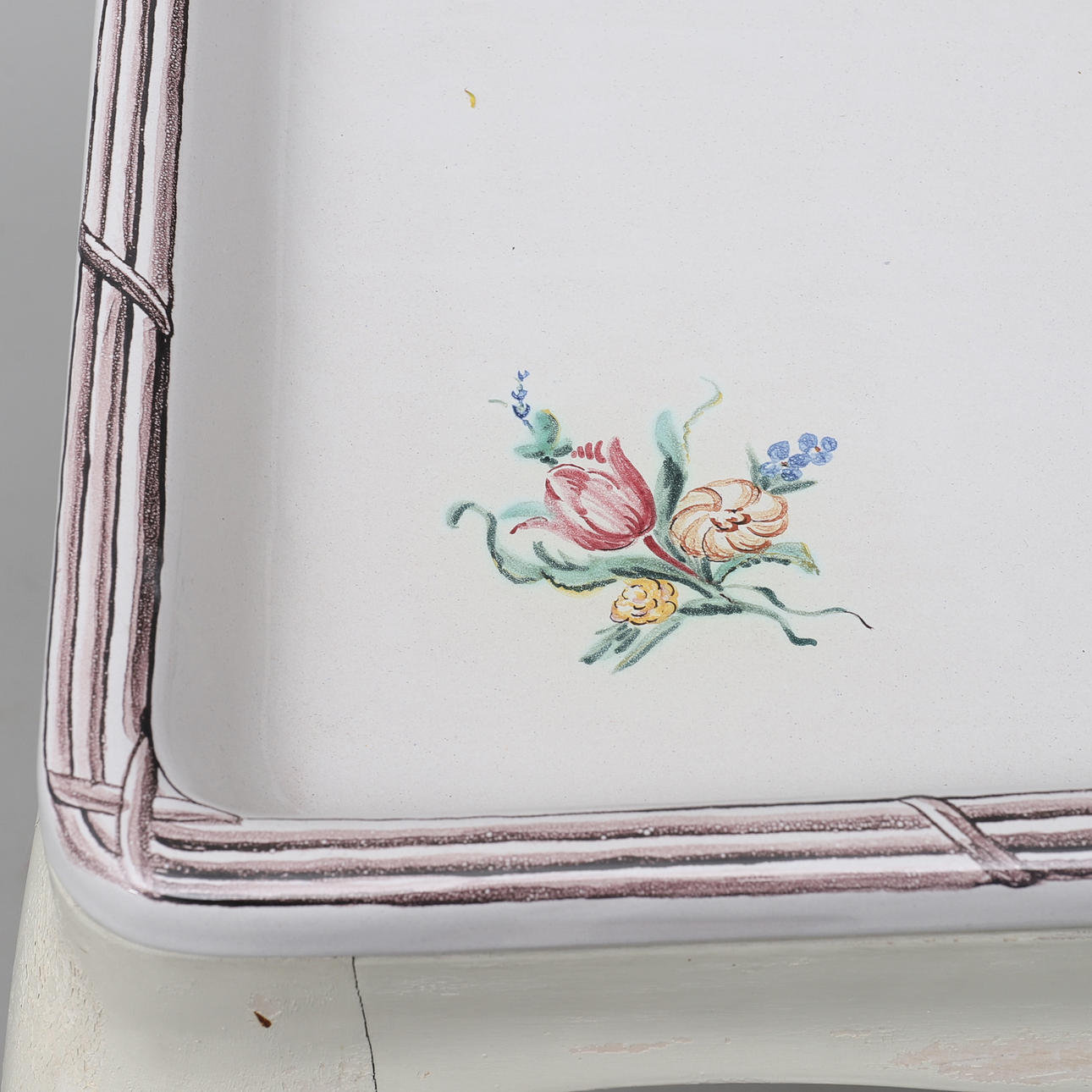 Rococo style, tray made of faience with flower painting in colors, base painted in white, height 77, 84x62 cm.