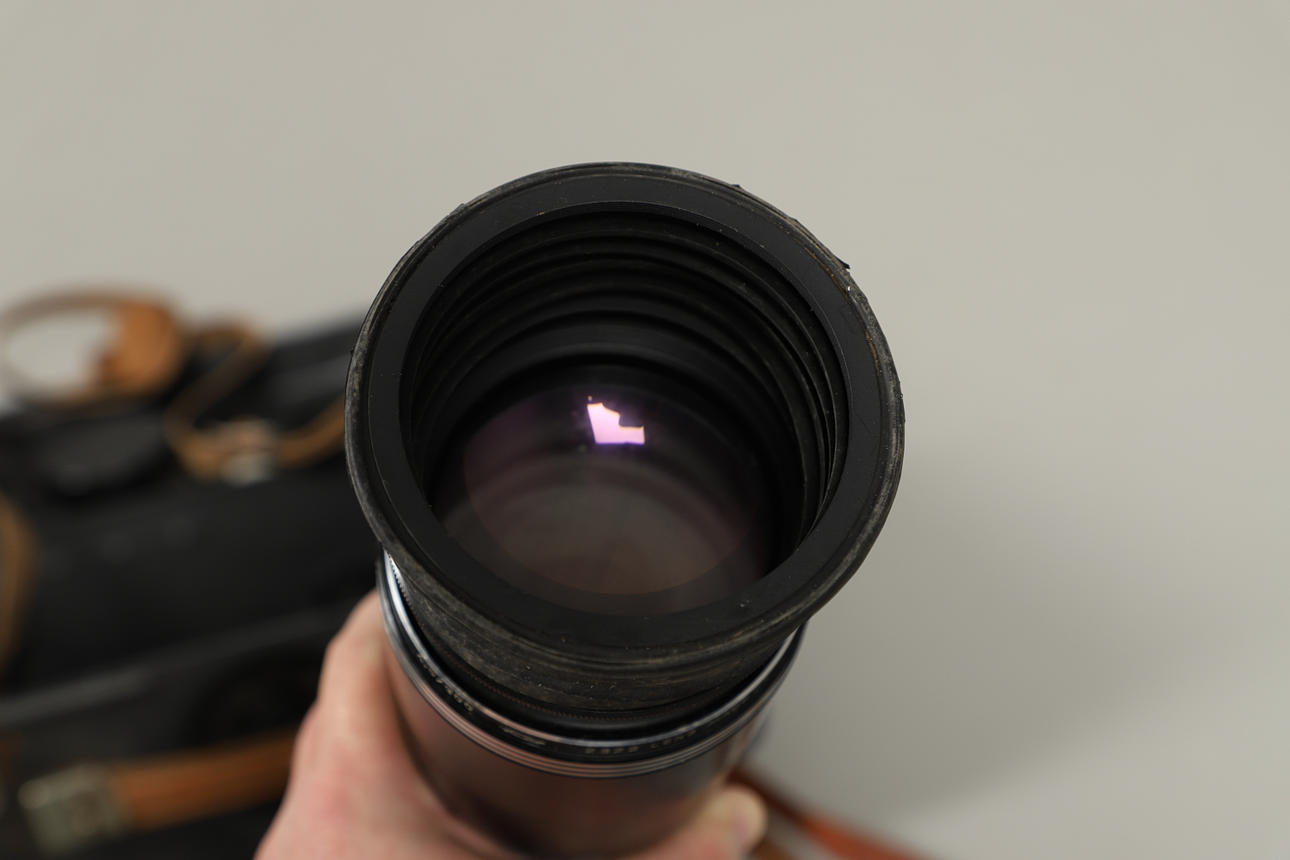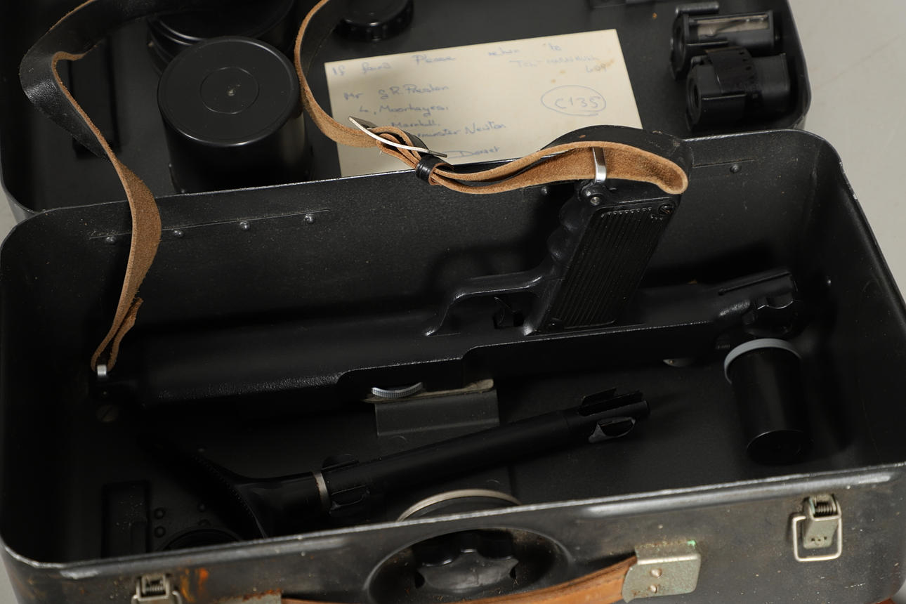 The vintage camera comes within its original carry case, together with accessories. Dimensions of case: Height 16cm x Length 38cm x Depth 20cm.