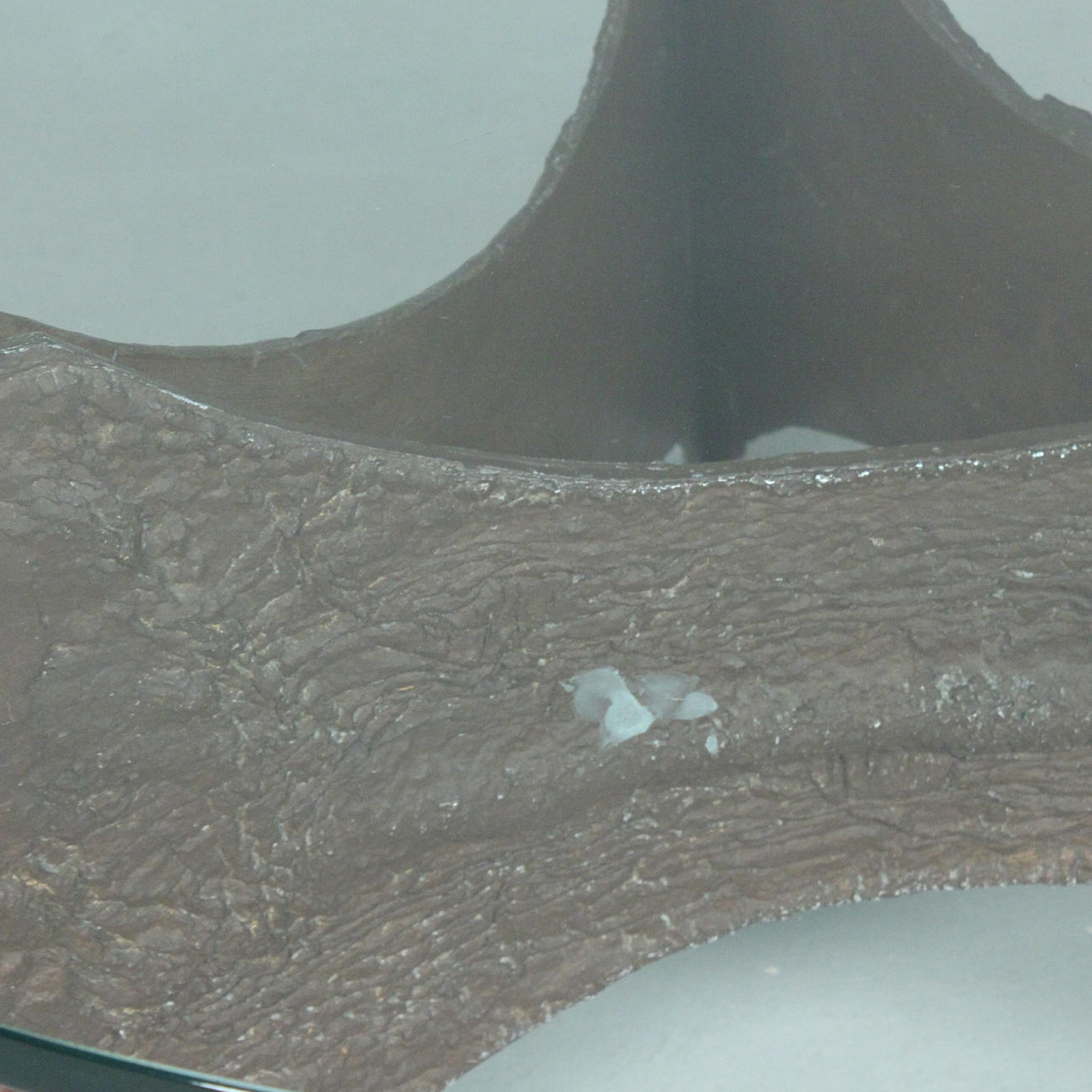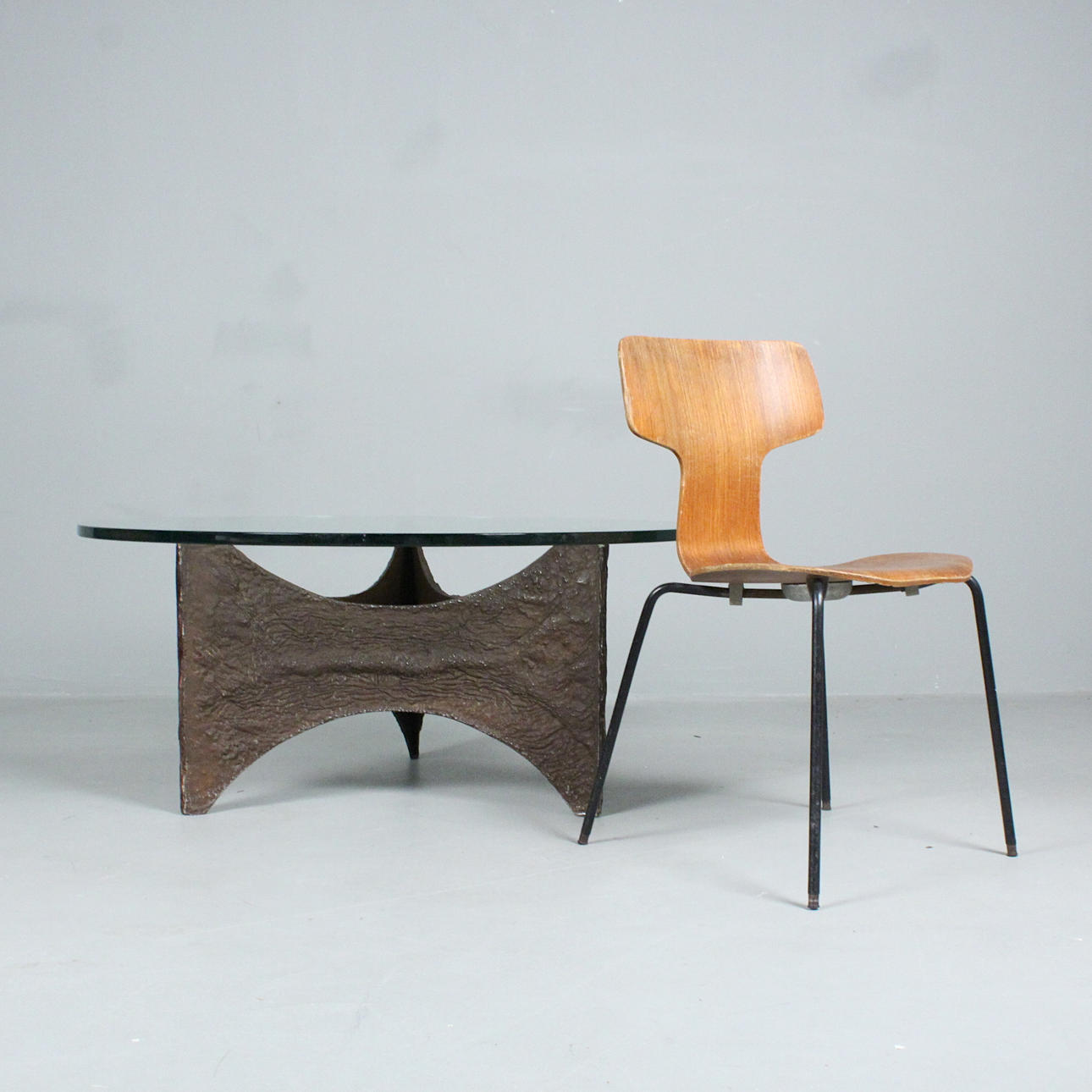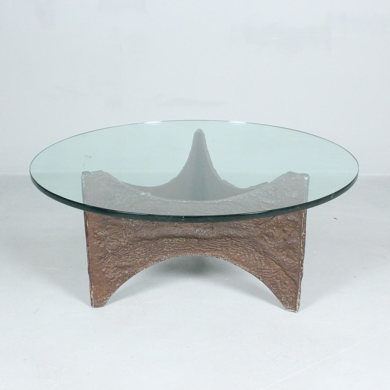 Brutalist coffee table/coffee table, 1970s, resting glass top, cast metal,