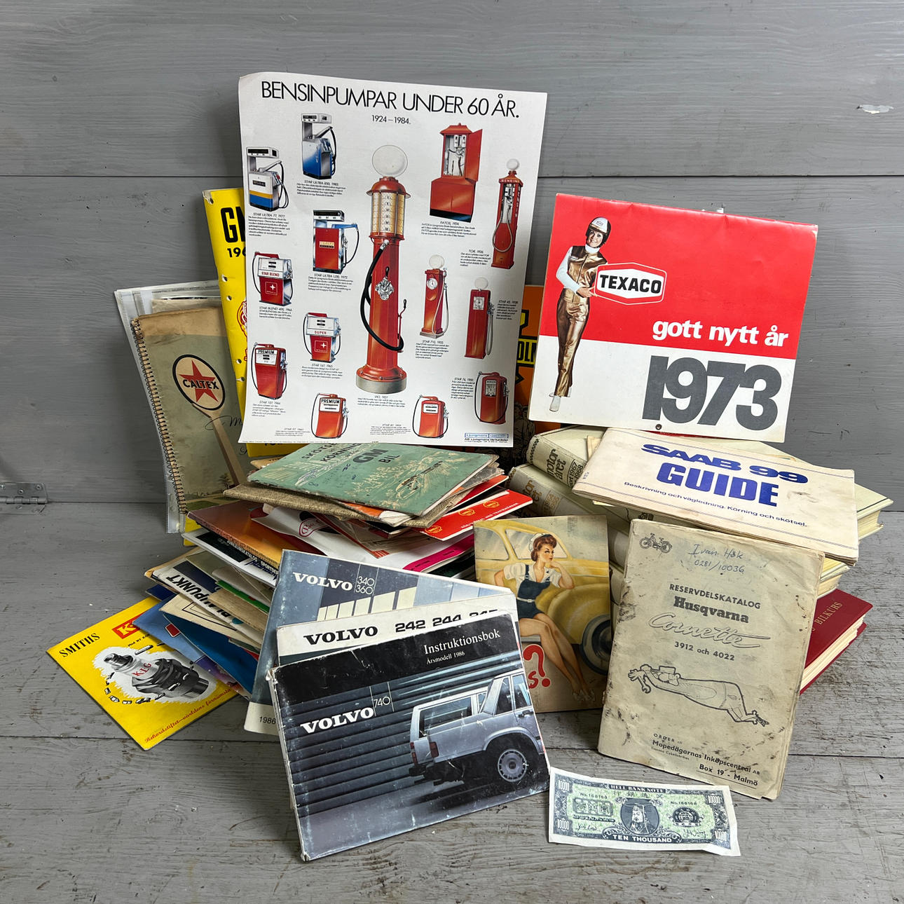 Incl. Engine year, Caltex car map, Volvo among others 242 1977, Escort, Texaco almanac 1973, Opel Ascona/Manta etc