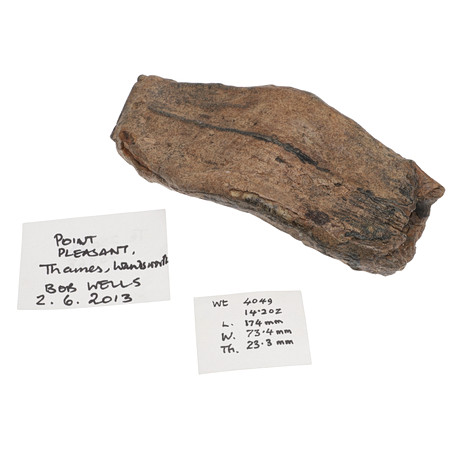 Collected from the bed of the North Sea, the specimen interestingly has a pebble and partial shell wedged within the foramens.