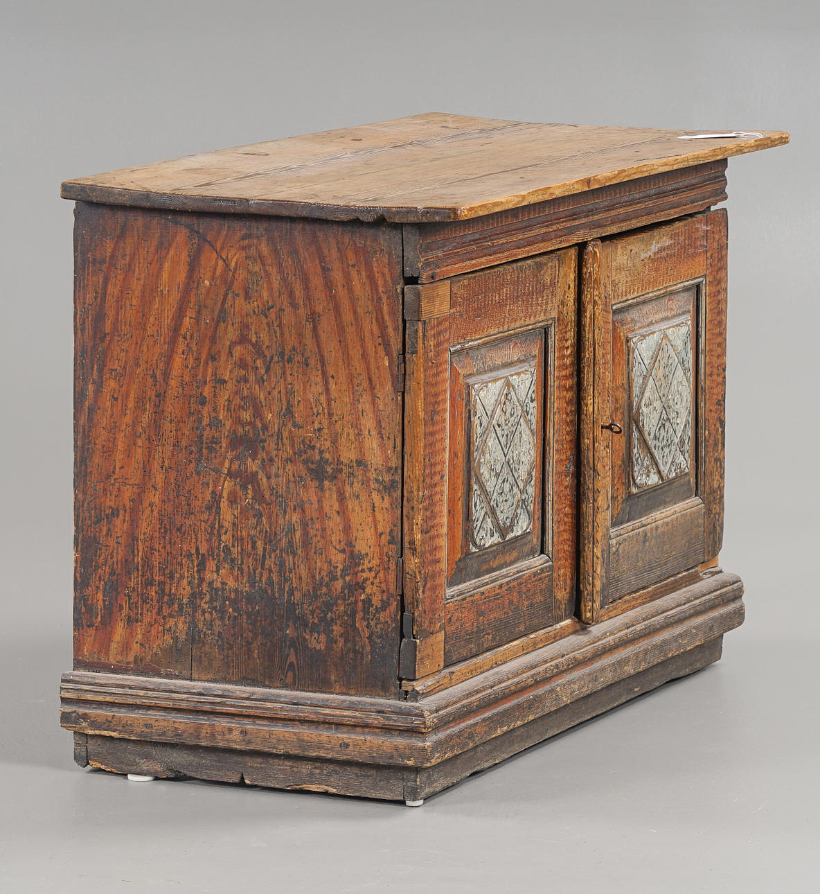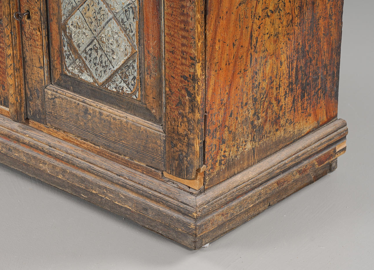 Wear, cracks, rejection, worm tongue, renovated and completed, later hinges & locks, loose doors, defective locks.