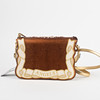 Shoulder bag with 4 compartments, one with zipper. Richly decorated with plaits in the form of wings, red heart in velvet, differently colored plastic stones and pearls.