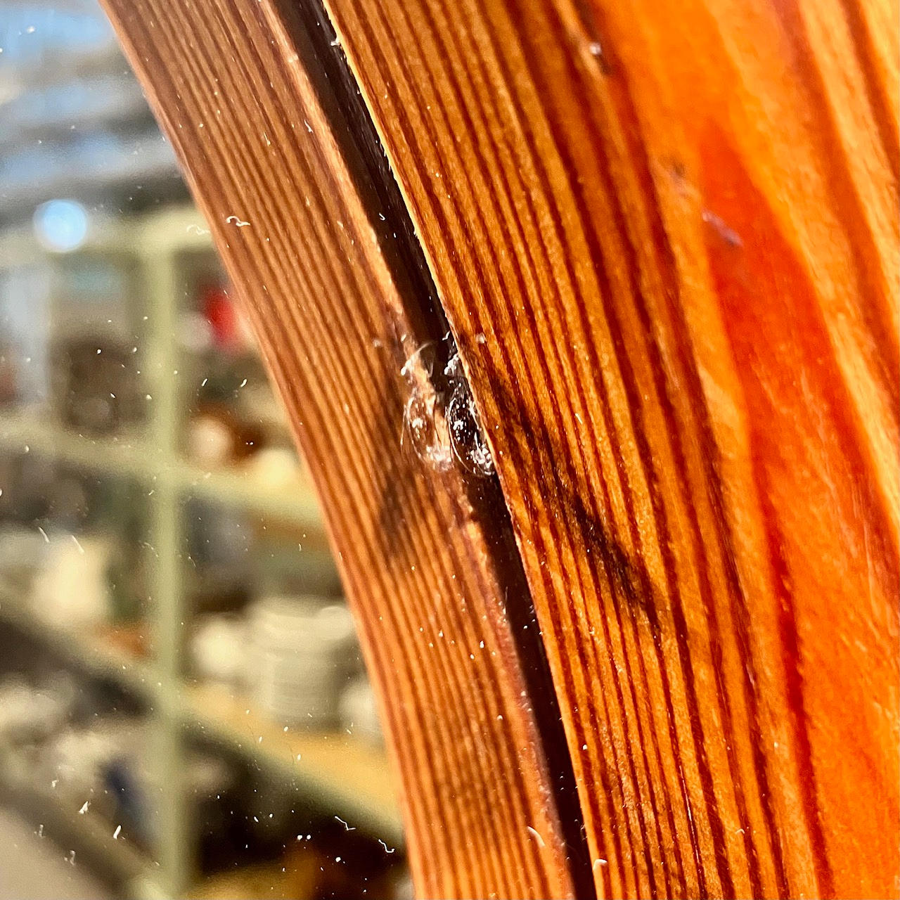Scratches, marks. Mirror glass with minor edge damage.