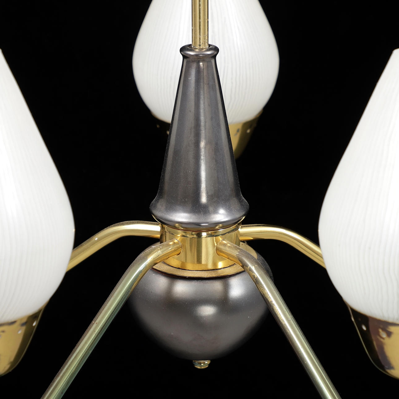 3247659. A BRASS/glass ceiling lamp, mid 20th century.