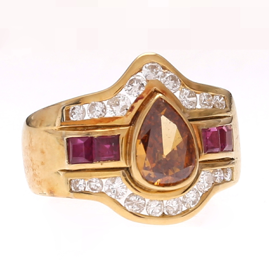 3251168. MONTSERRAT GUARDIOLA. Fancy Orangish diamond ring.