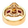18K gold, central Fancy Orangish diamond, approx. 0.73 cts., rest of brilliant cut diamonds, approx. 0.45 cts. and square cut synthetic rubies. Signed. Size 11/51. 6.6 gr.