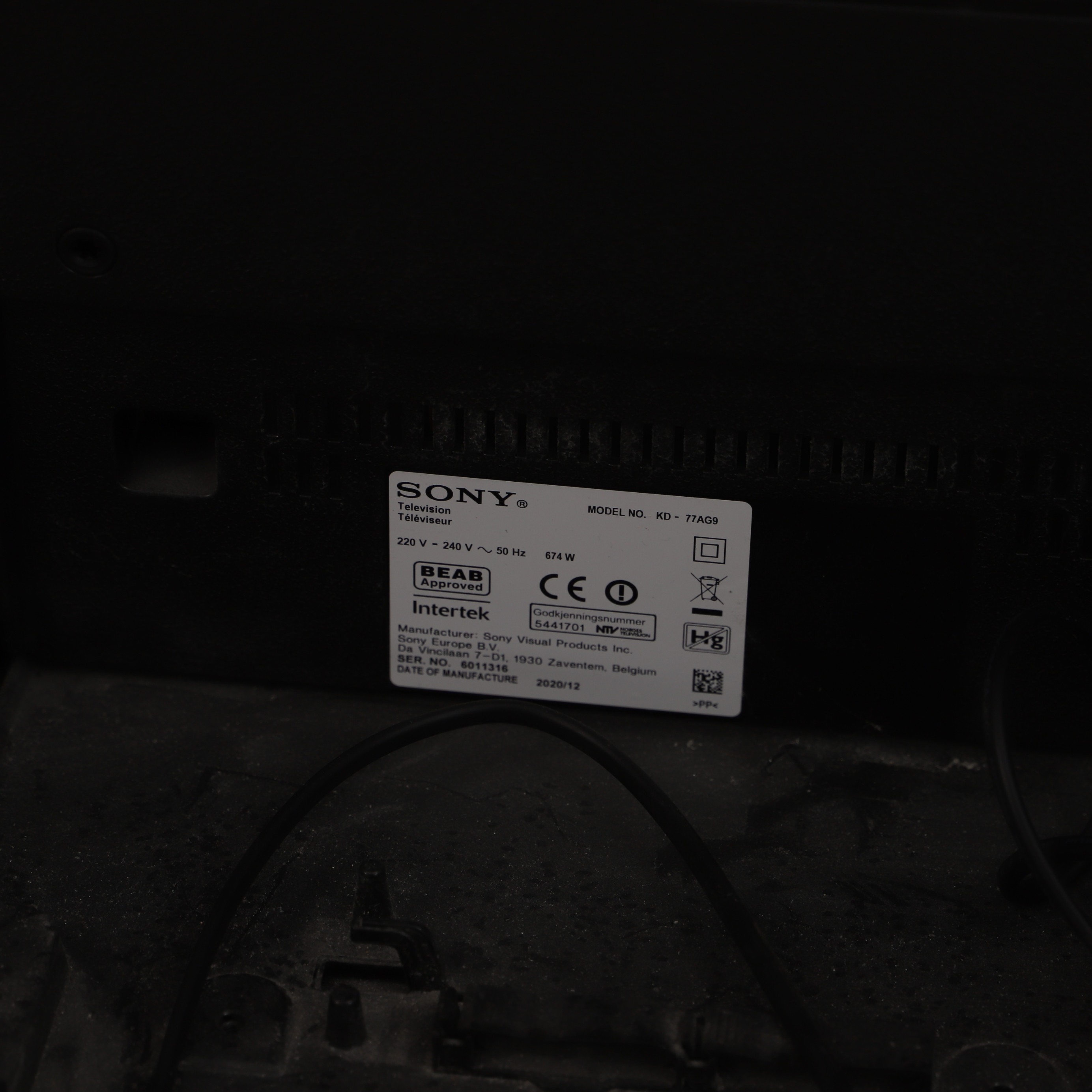 3253434. TV, Sony, KD 77AG9.