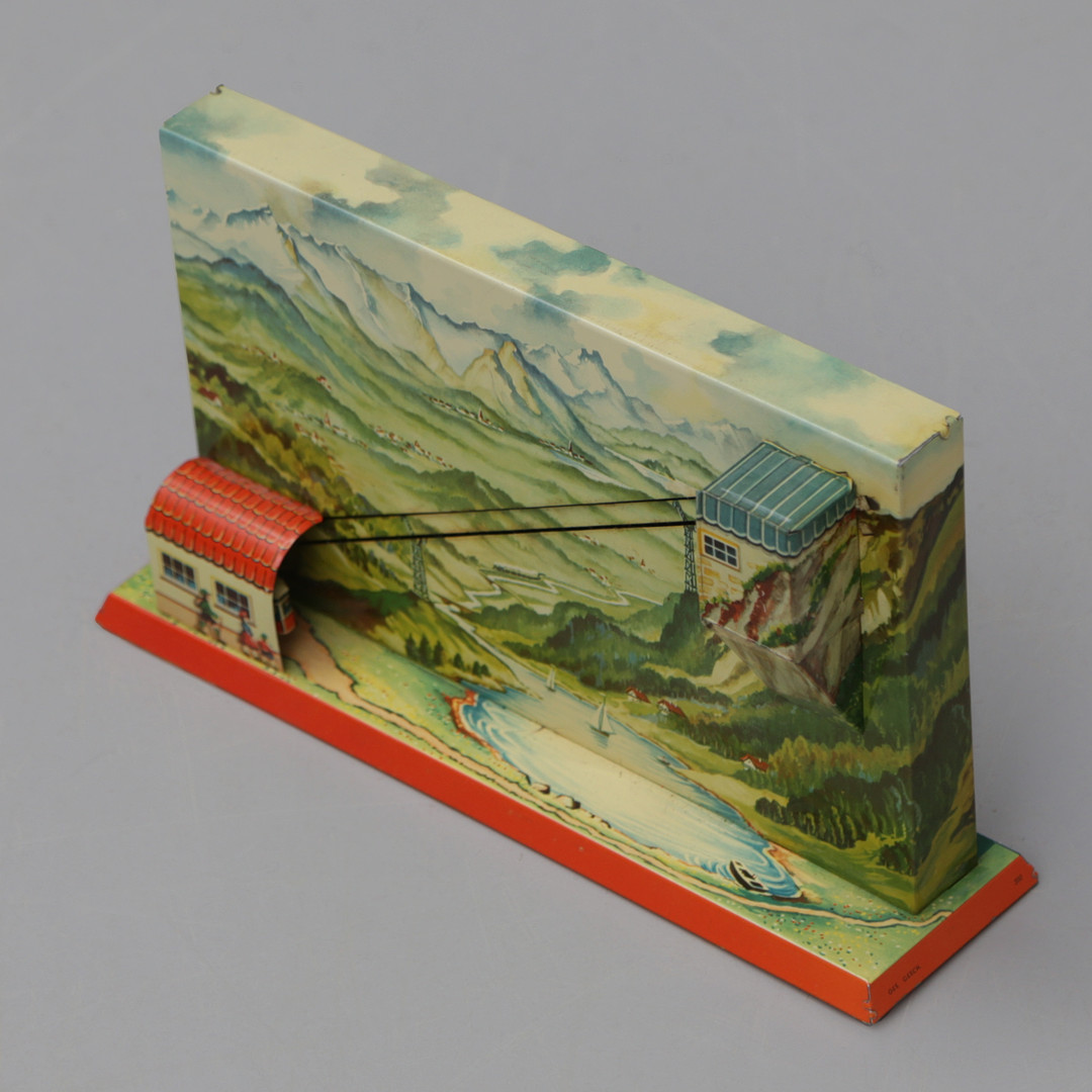 3261084. MECHANICAL TOY, cable car, sheet metal.