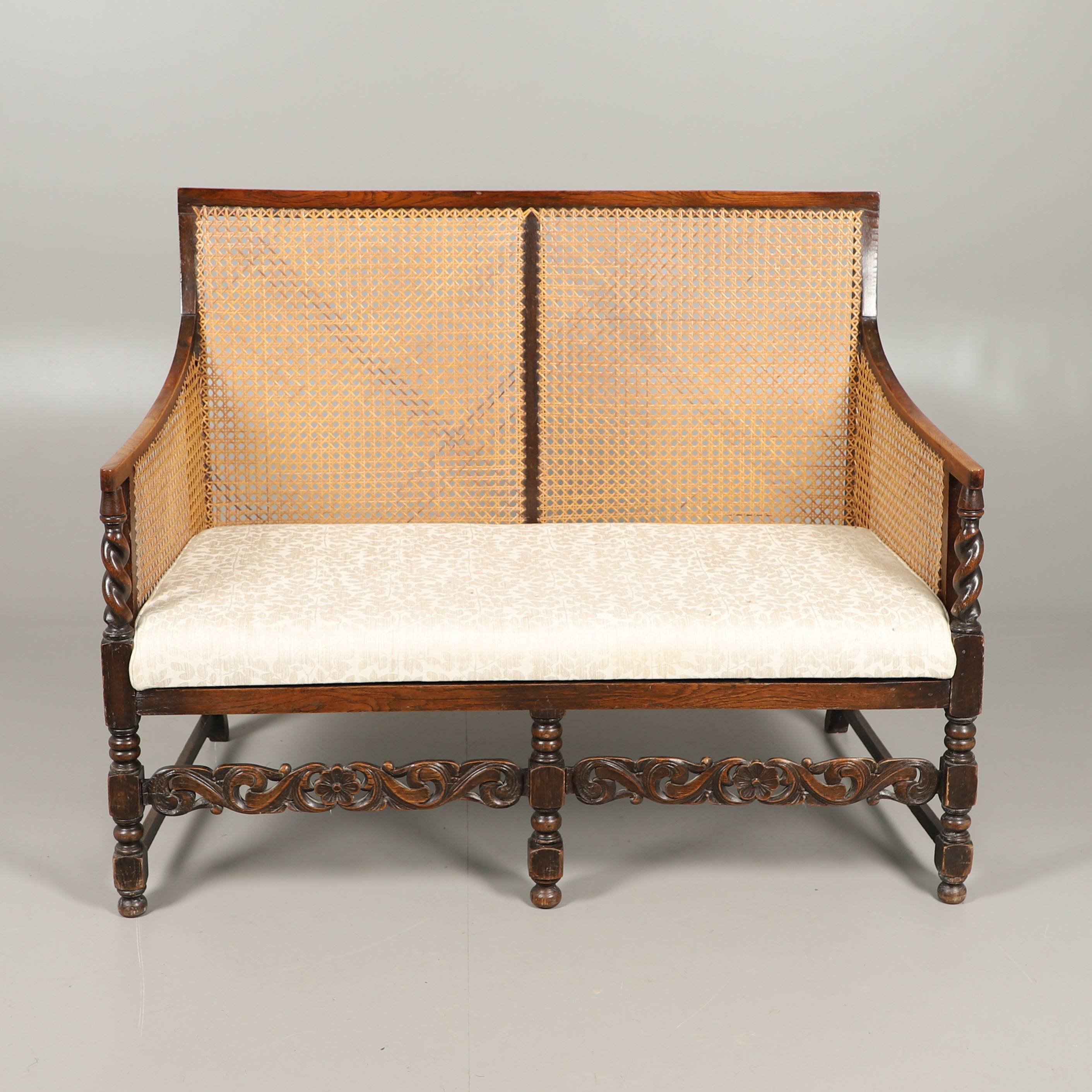 3272055. A 1920S BEECH FRAMED BERGERE SETTEE.