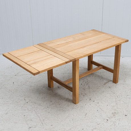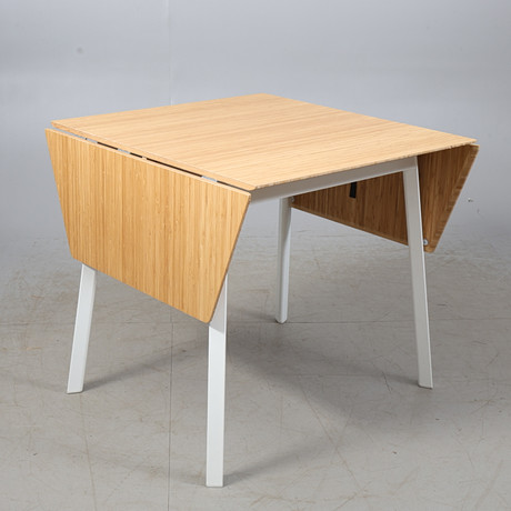Lacquered birch, table top painted blue. 76 x 80-111 cm, height 71.5 cm.