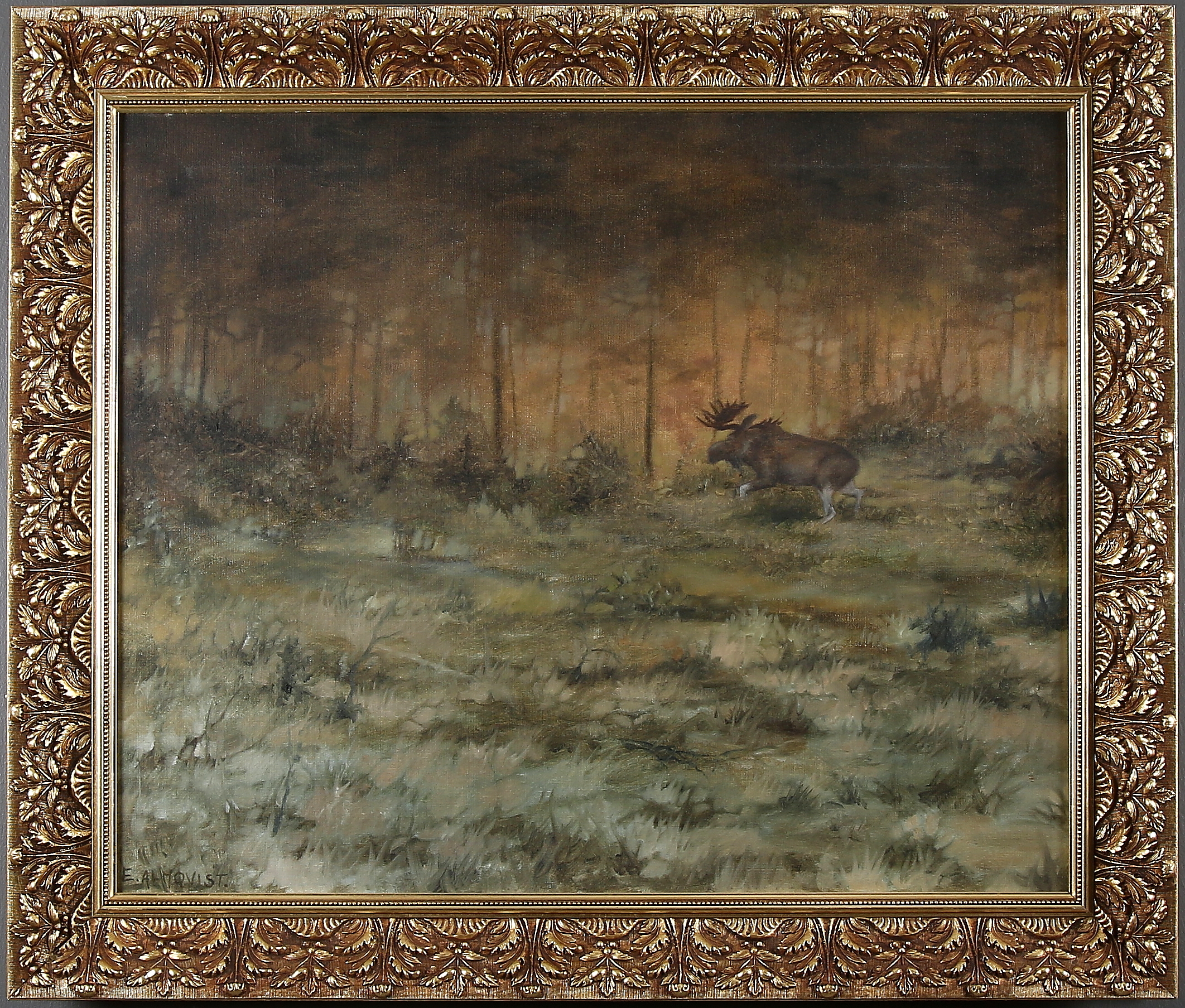 328128. ATTRIBUTED TO ESTER ALMQVIST. "Flying moose", signed E Almqvist.