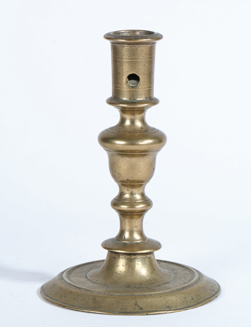 44. 3283349. A LATE 17TH CENTURY BRASS SOCKET CANDLESTICK, CIRCA 1690.