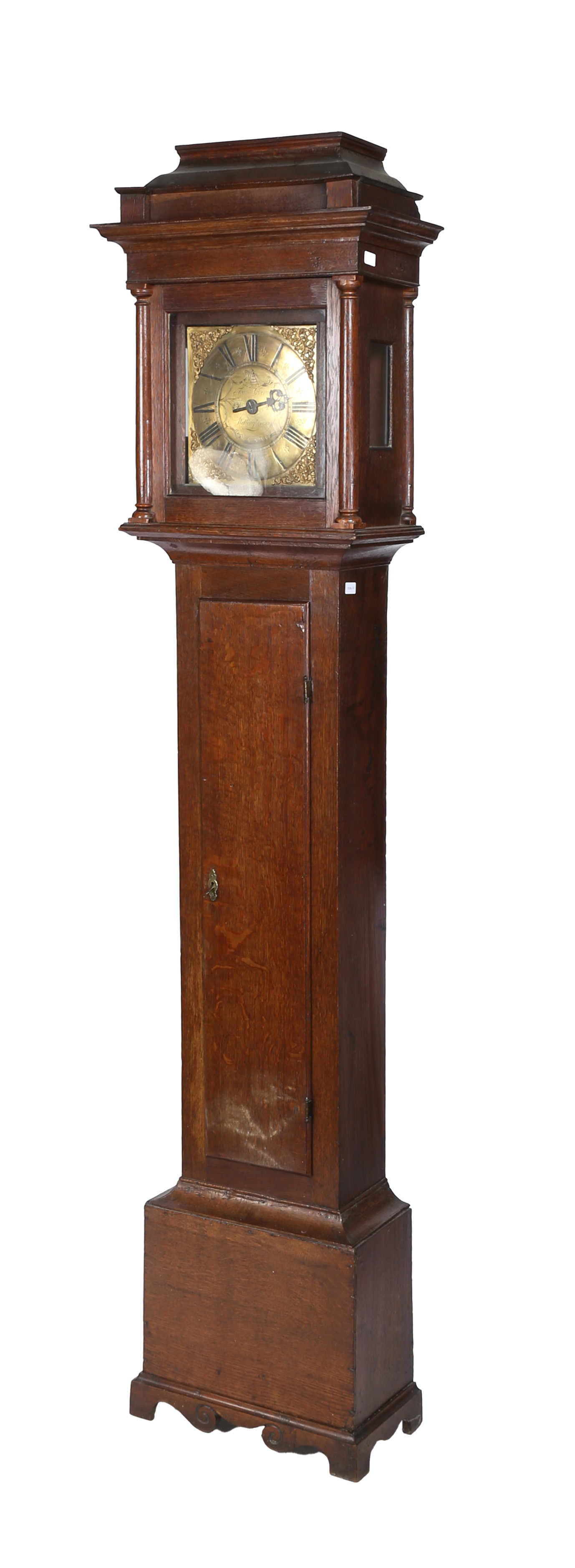 3284779. A GEORGE III OAK 30-HOUR LONGCASE CLOCK, THE SQUARE BRASS DIAL SIGNED 'FRANS OVERALL, WELLINGBOROUGH', CIRCA 1780.