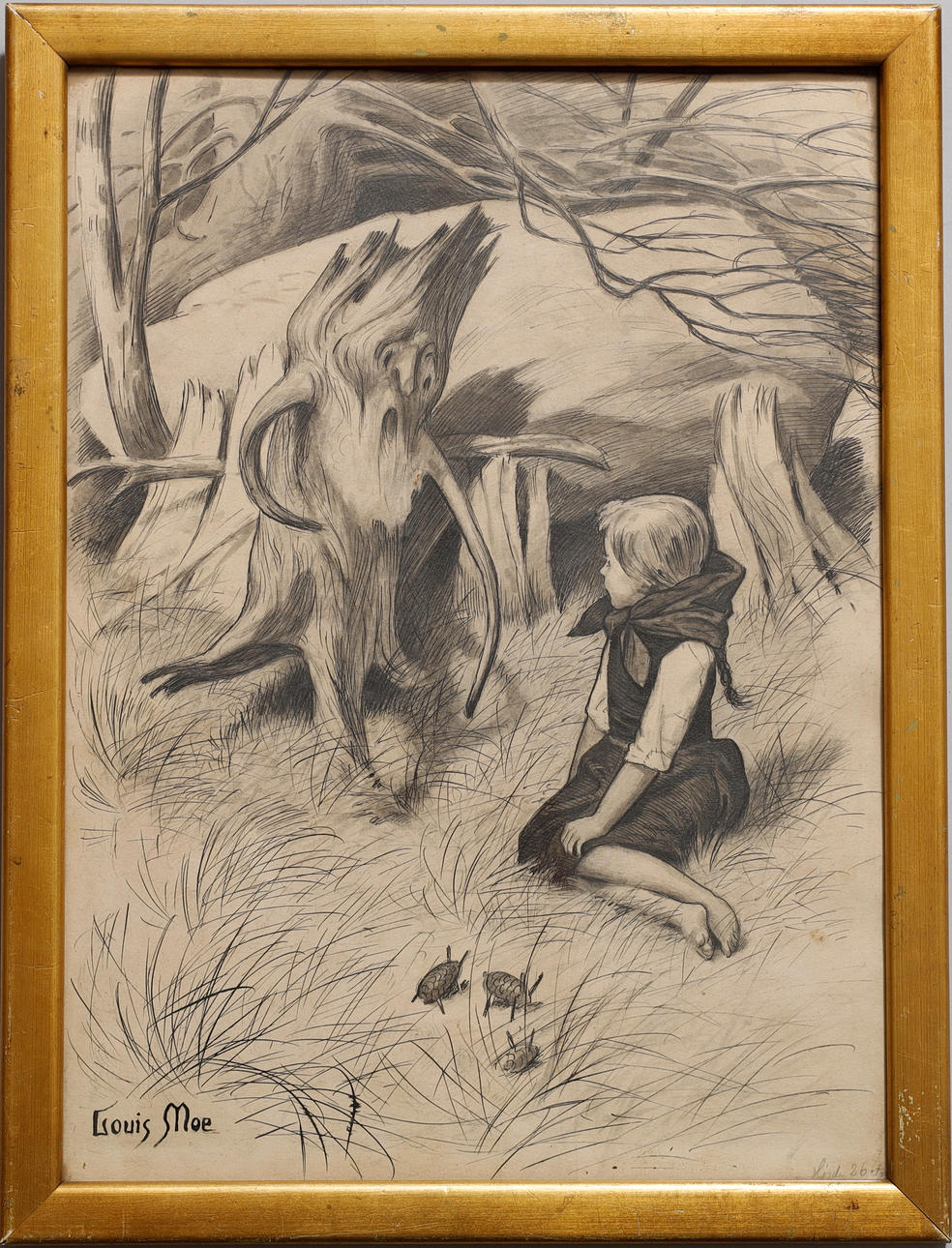 Drawing by Louis Moe (1857-1945), signed.